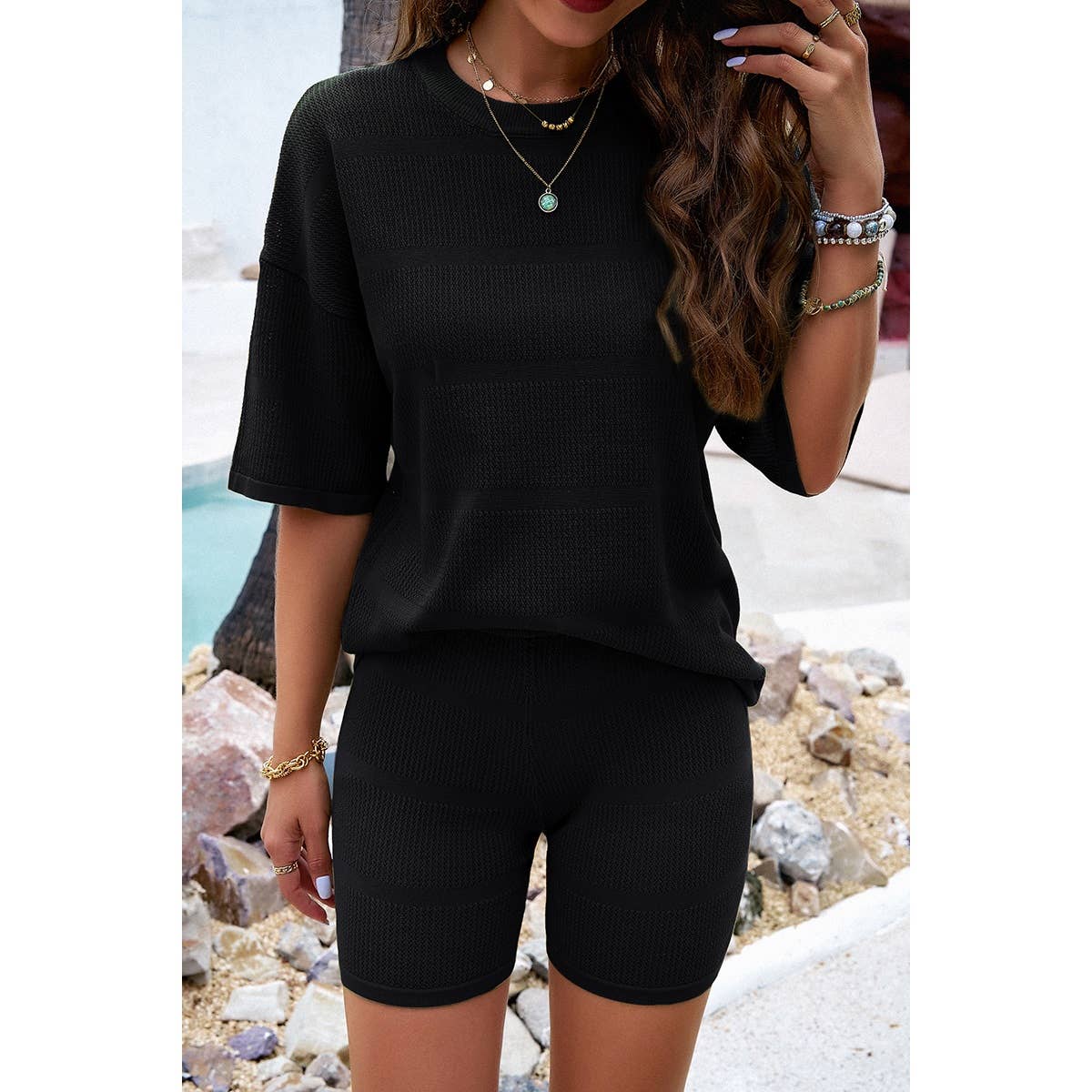 Megan ~ Two Pieces Solid Drop Shoulder Activewear Sets: BLACK *Final Sale*