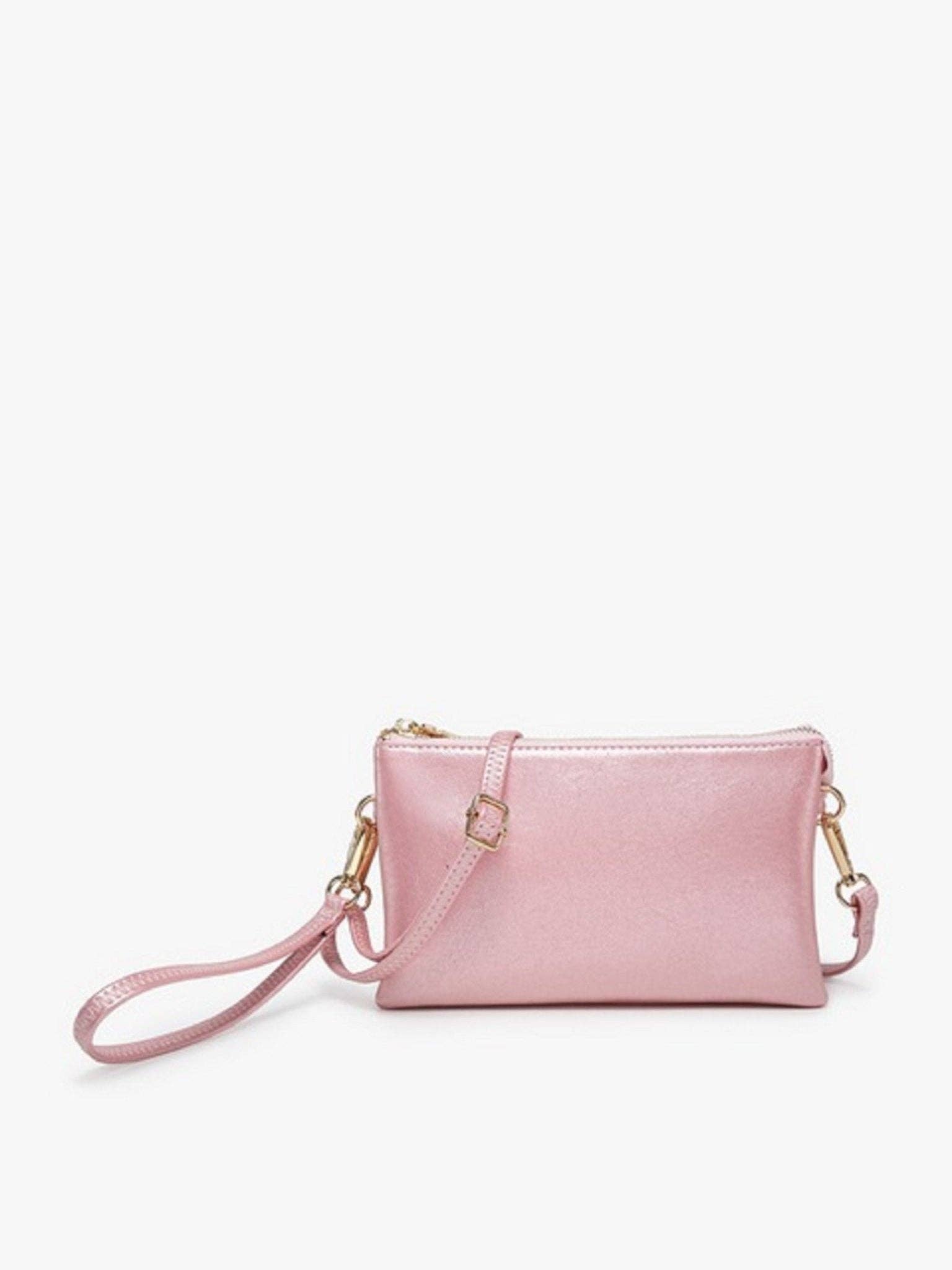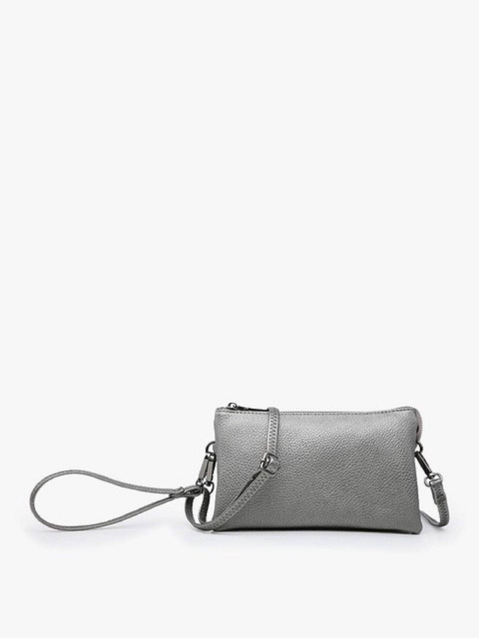 Make a statement with the M013 Riley Plain Metallic 3 Compartment Crossbody/Wristlet! Its minimalist style ensures it turns heads, with its three spacious compartments for all the things you need to stay stylishly ready! Whether you're heading uptown or downtown, this bag has got your back! * Monogrammable * Top zipper closure with two major compartments and 1 middle zipper pocket * 2 slip pockets and 6 cardholders * Detachable wristlet strap * Adjustable/detachable shoulder strap * Gold or silver-tone hardware * Vegan leather