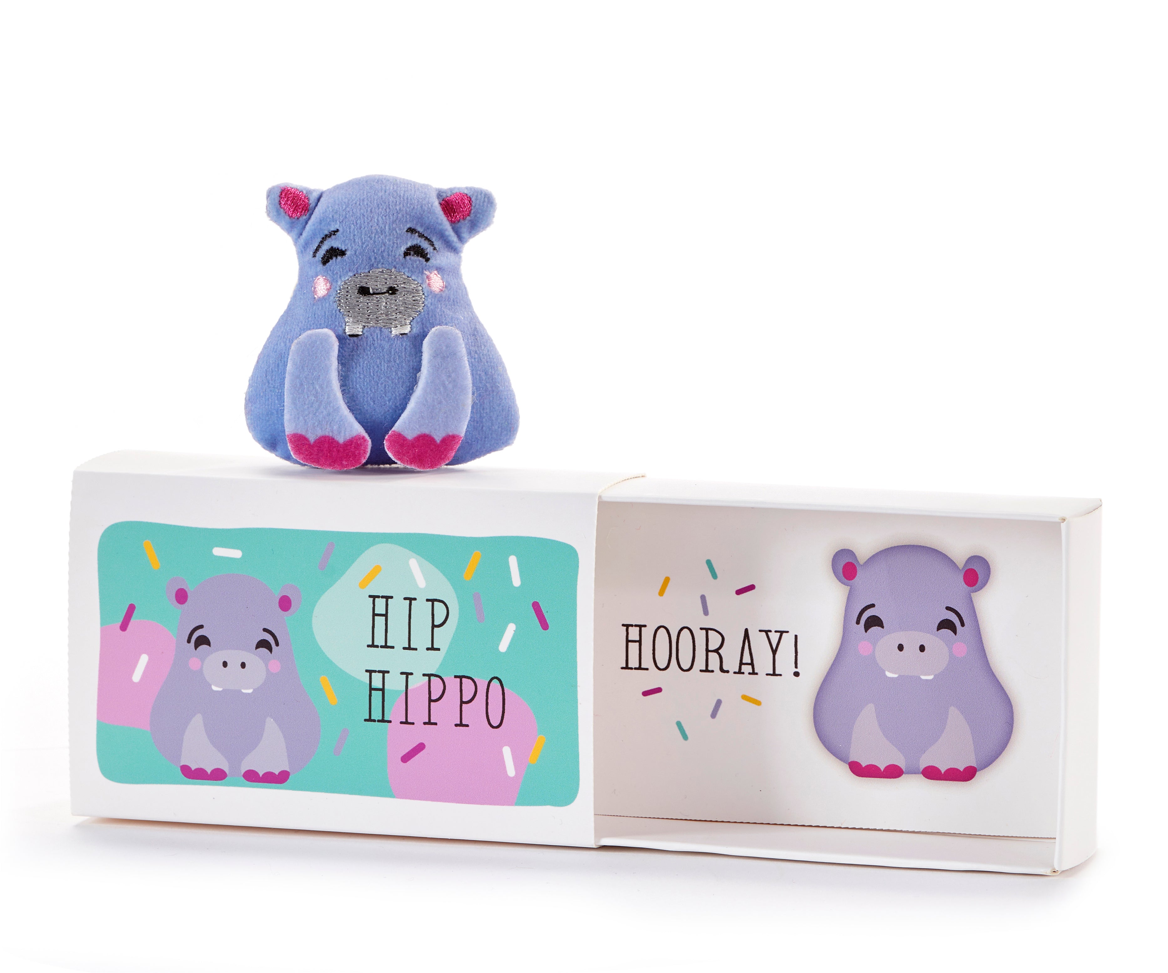 Hip Hippo plush token with HOPE YOUR BIRTHDAY IS AS SWEET AS YOU! sentiment gift box. These cute little boxes hold little inspiring messages, charming, clever and ever so meaningful. So easy to pop into a pocket or tuck away on a shelf for times when you need a little thoughtful hug to brighten your day.