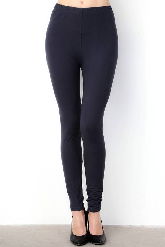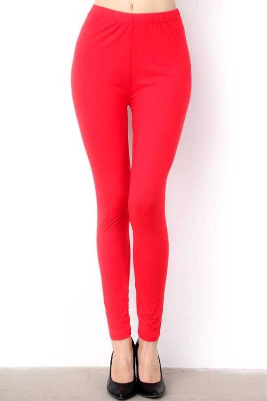BUTTERY SOFT PEACHSKIN SOLID BRUSHED FULL LEGGINGS 1" ELASTIC WAIST Length: 36" Inseam: 26" Model is wearing a size ONE SIZE In packs of 6 ONESIZE per color only.
