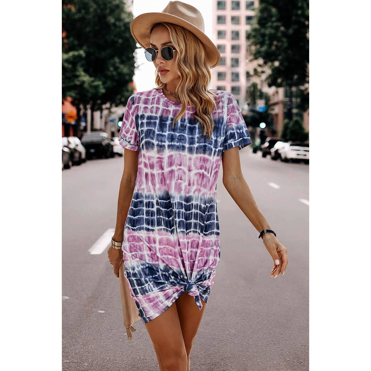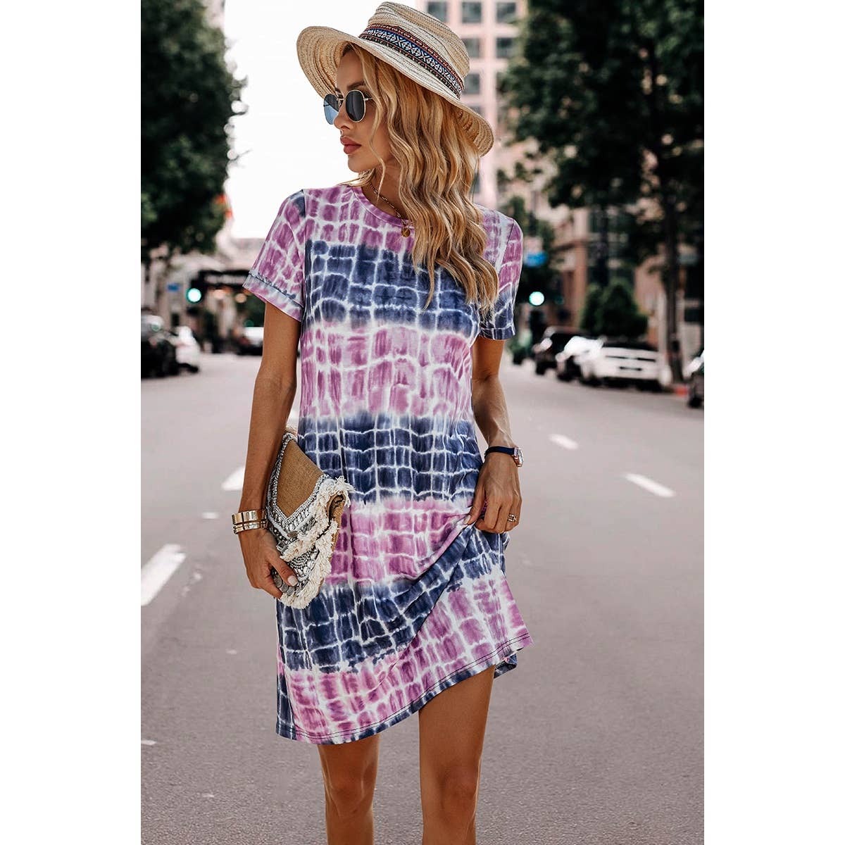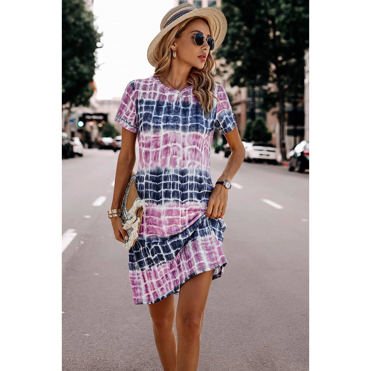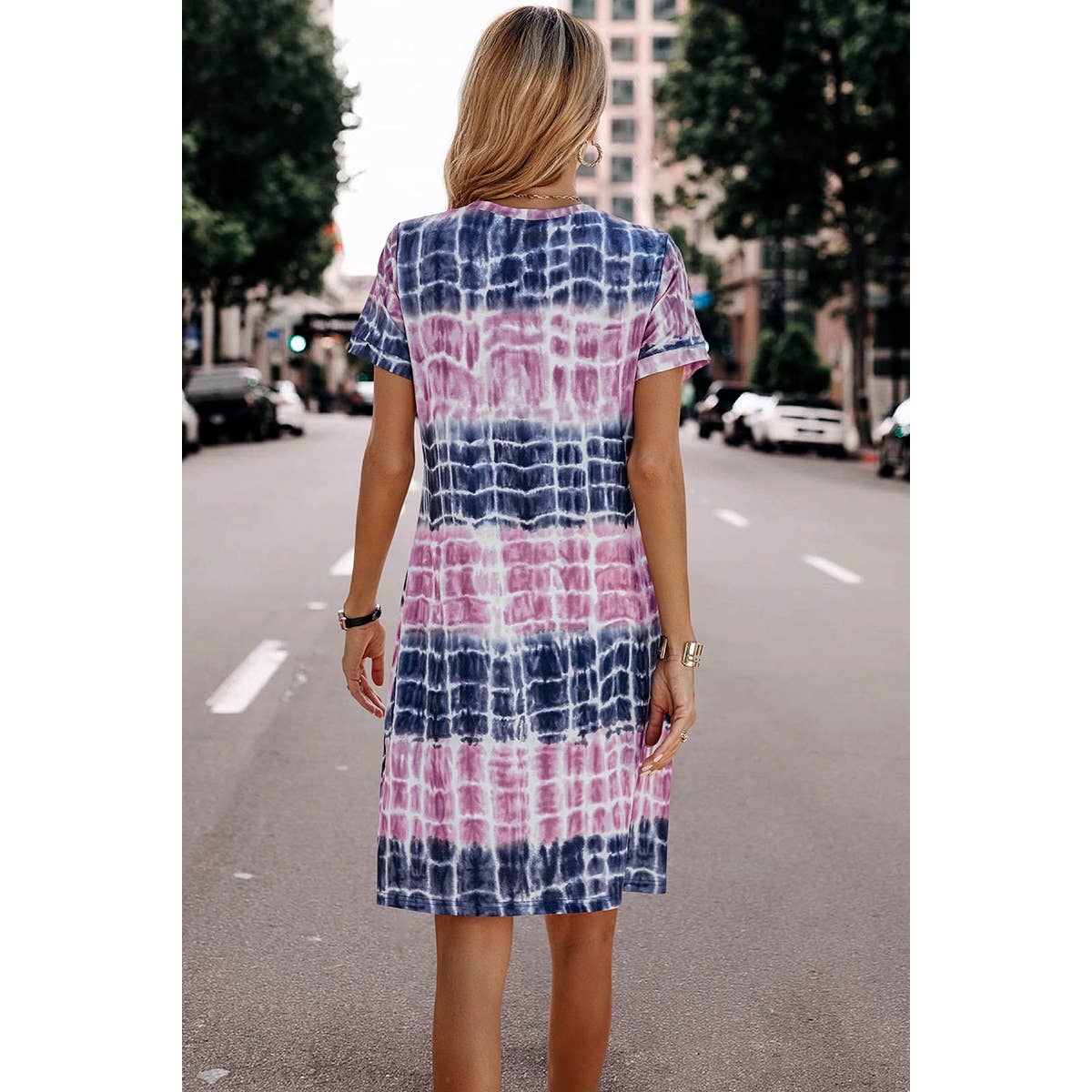 Tie Dye Short Sleeve Round Neck Shirt Dress