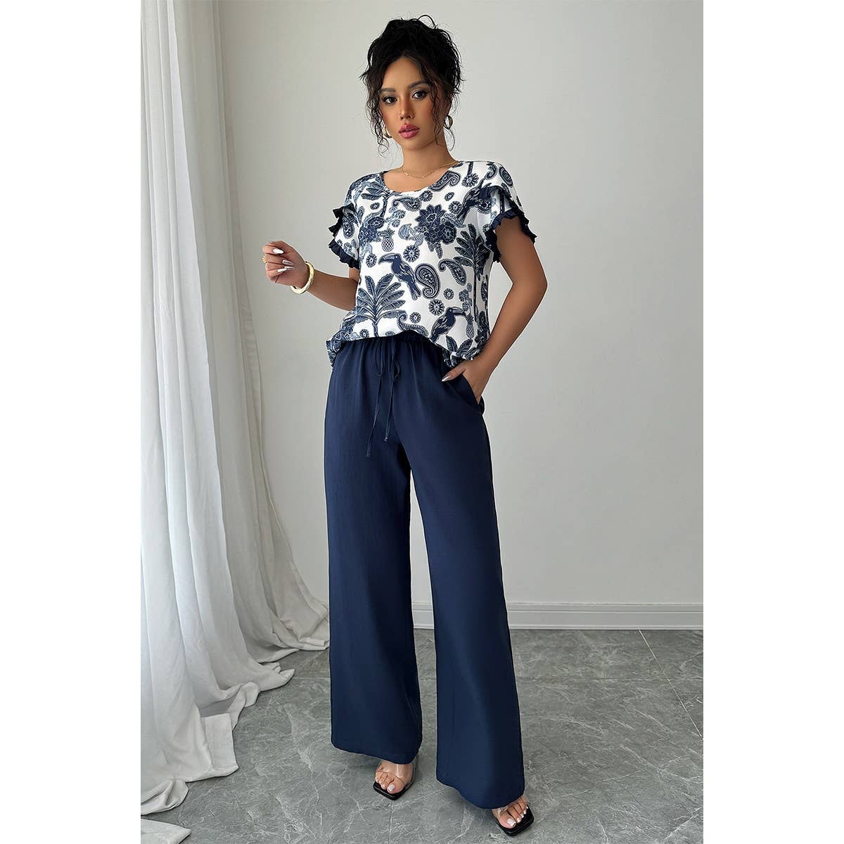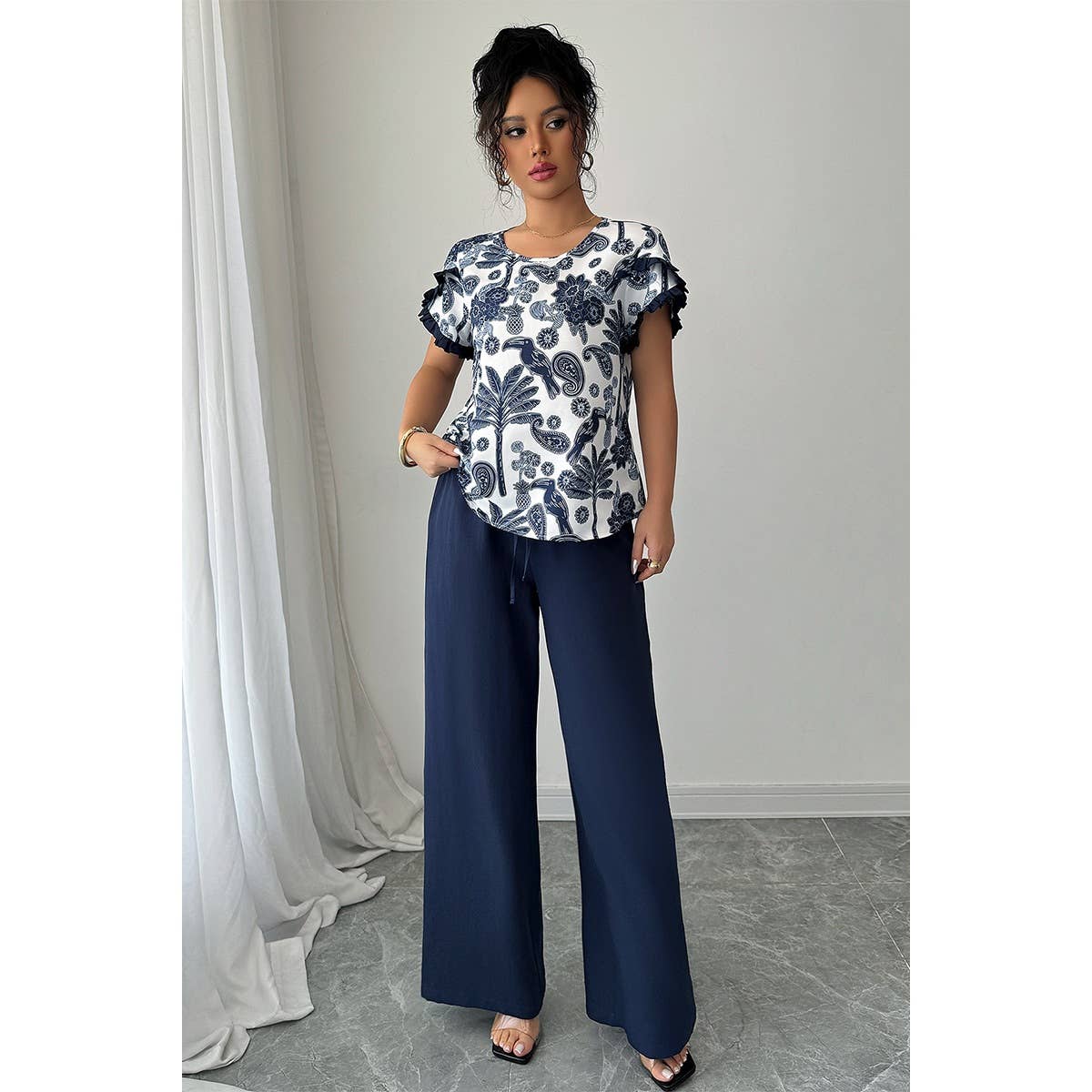 Two Pieces Floral Print Ruffle Hem Sleeve Sets