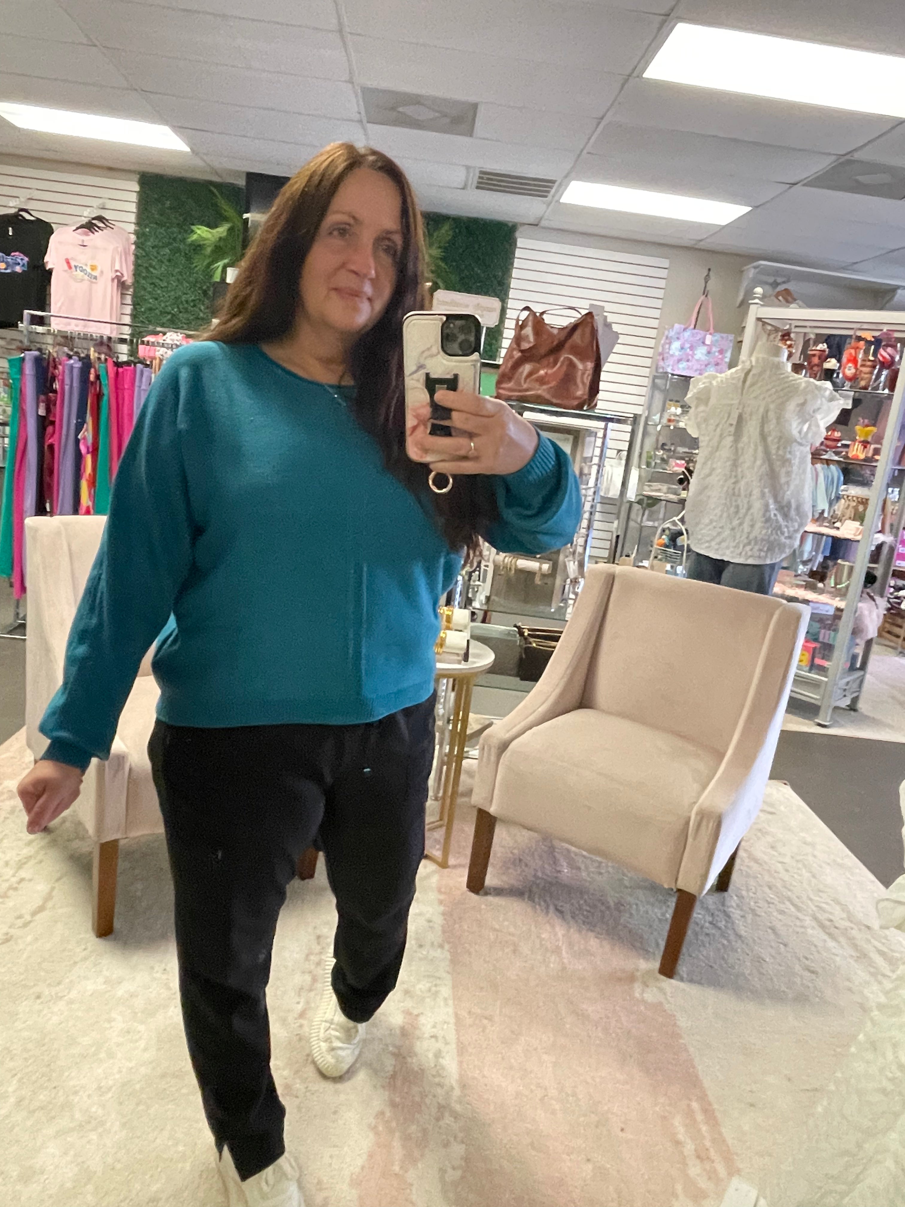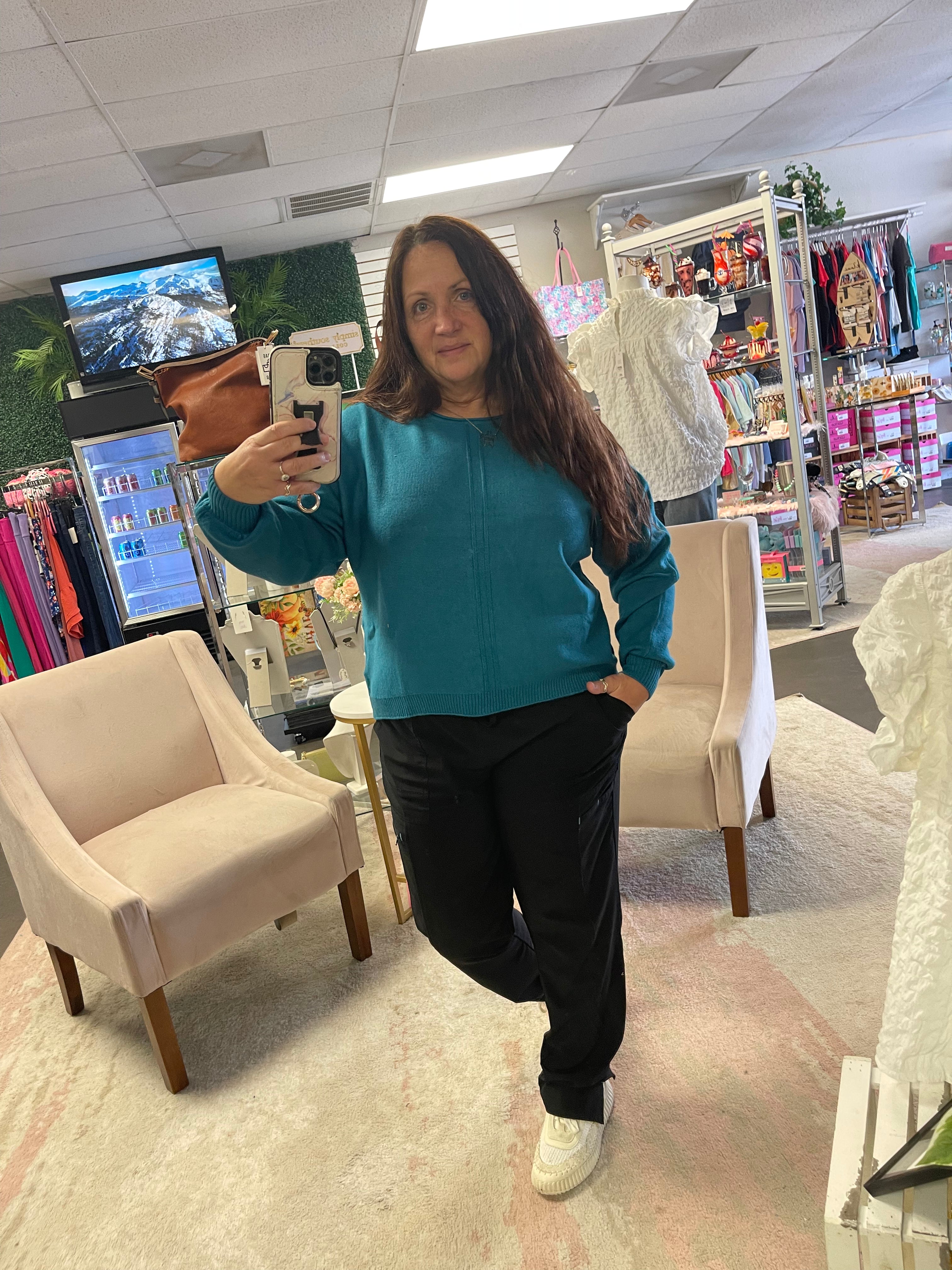 Step into effortless style with The Harper, a boutique-favorite sweater in a stunning ocean teal. Designed with a soft viscose-blend knit, this sweater drapes beautifully for a relaxed yet polished look. A subtle front seam detail adds just the right amount of texture, making it easy to dress up or down.