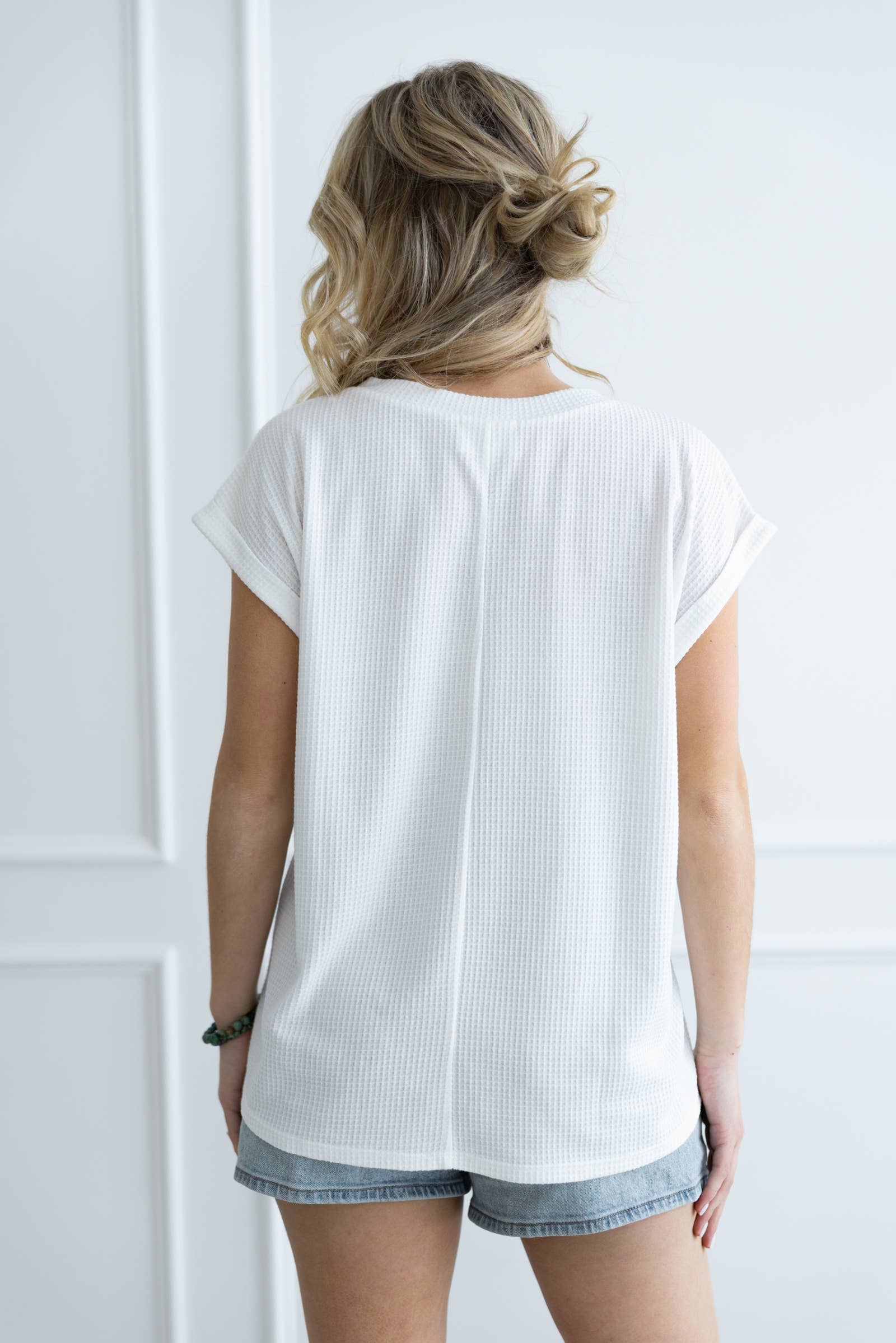 Stay comfortable and stylish in this two-tone thermal top, designed with a flattering v-neckline and short Dolman sleeves for a relaxed, effortless look. It's classic, easy, and a versatile piece perfect for layering. Stretchy, knit. Brand: Andree by unit