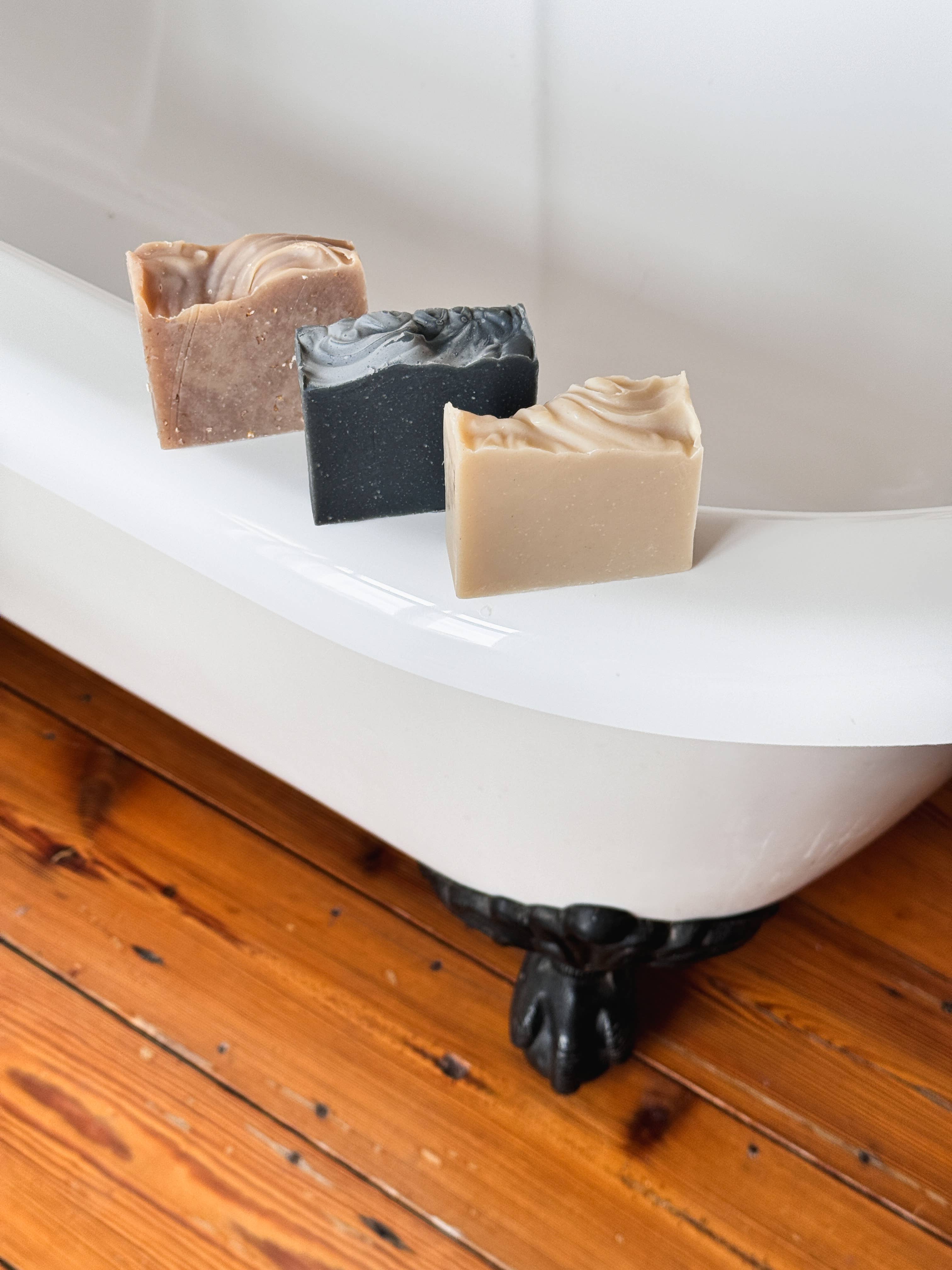 Our bar soaps are handcrafted in historic Charleston, SC, using the traditional cold process method and have a gentle, creamy lather that is great for shaving, bathing, hands and faces. It is cleansing, moisturizing and lovely to use from hair to toes! Ou