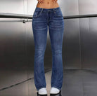 Searching for the perfect slim fit jeans? Your search ends here! Adorable jeans featuring bell bottoms and a stylishly distressed appearance. Slight stretch. Order your true size for a great fit