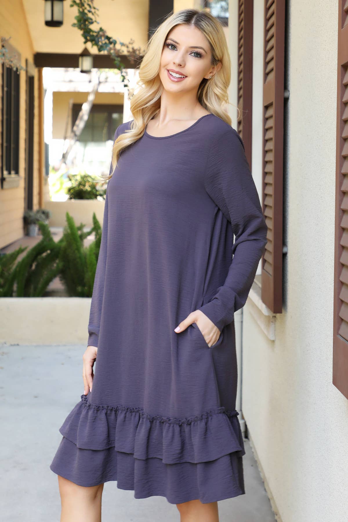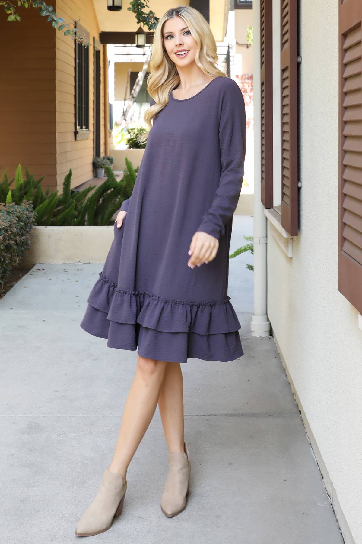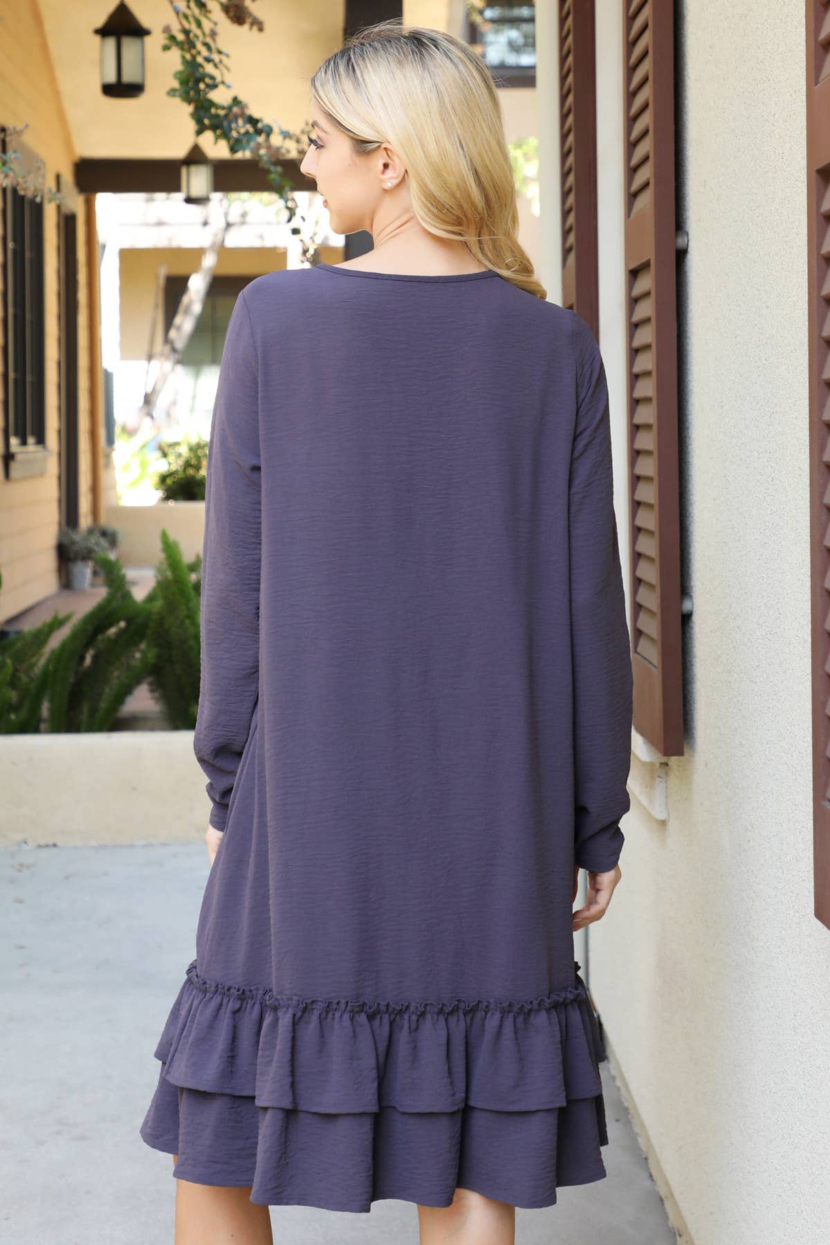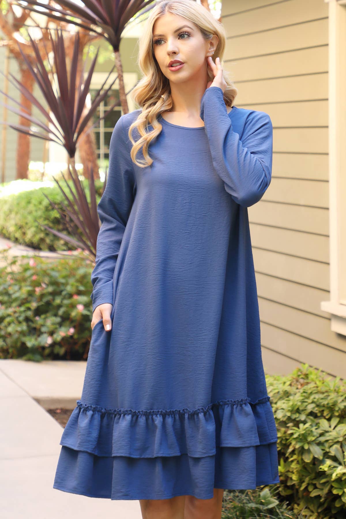 LONG SLEEVE FLAT MERROW DETAIL HEM WOVEN DRESS -1-1-1-1 /4PCS