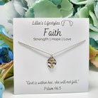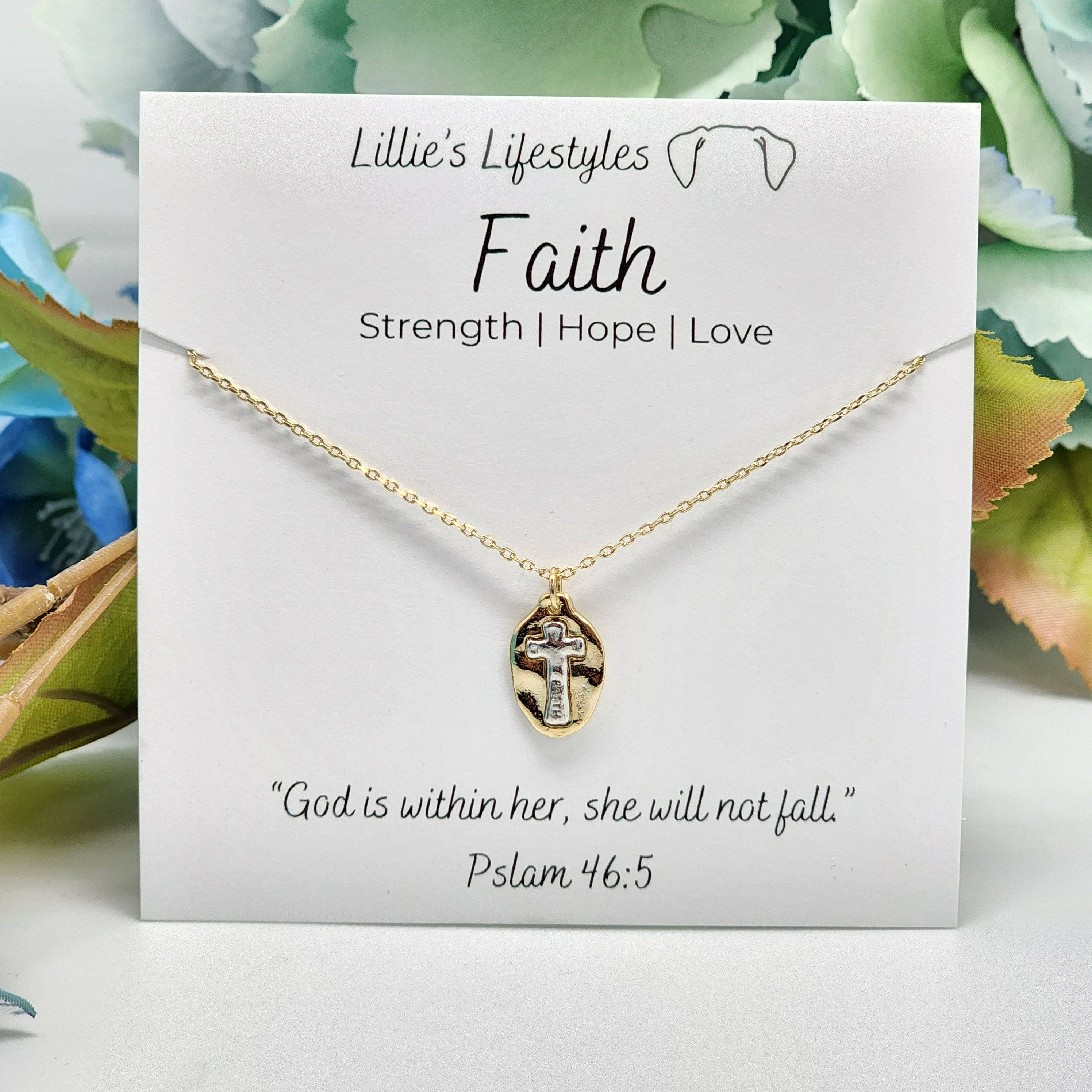 The Faith Two Tone Cross Necklace from Lillie's Lifestyles is a pretty statement of faith you will want to wear everyday. The Faith Pendant represents Strength, Hope and Love “God is within her, she will not fall.” Pslam 46:5. All of our necklaces come with our signature gift box.