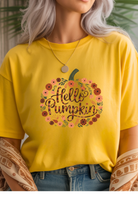 Get ready for fall fun with the Hello Pumpkin T-Shirt. Made from super soft fabric, this cute tee features a charming floral design that adds a playful touch to your autumn wardrobe. Perfect for cozy days, it blends comfort and seasonal style effortlessly.