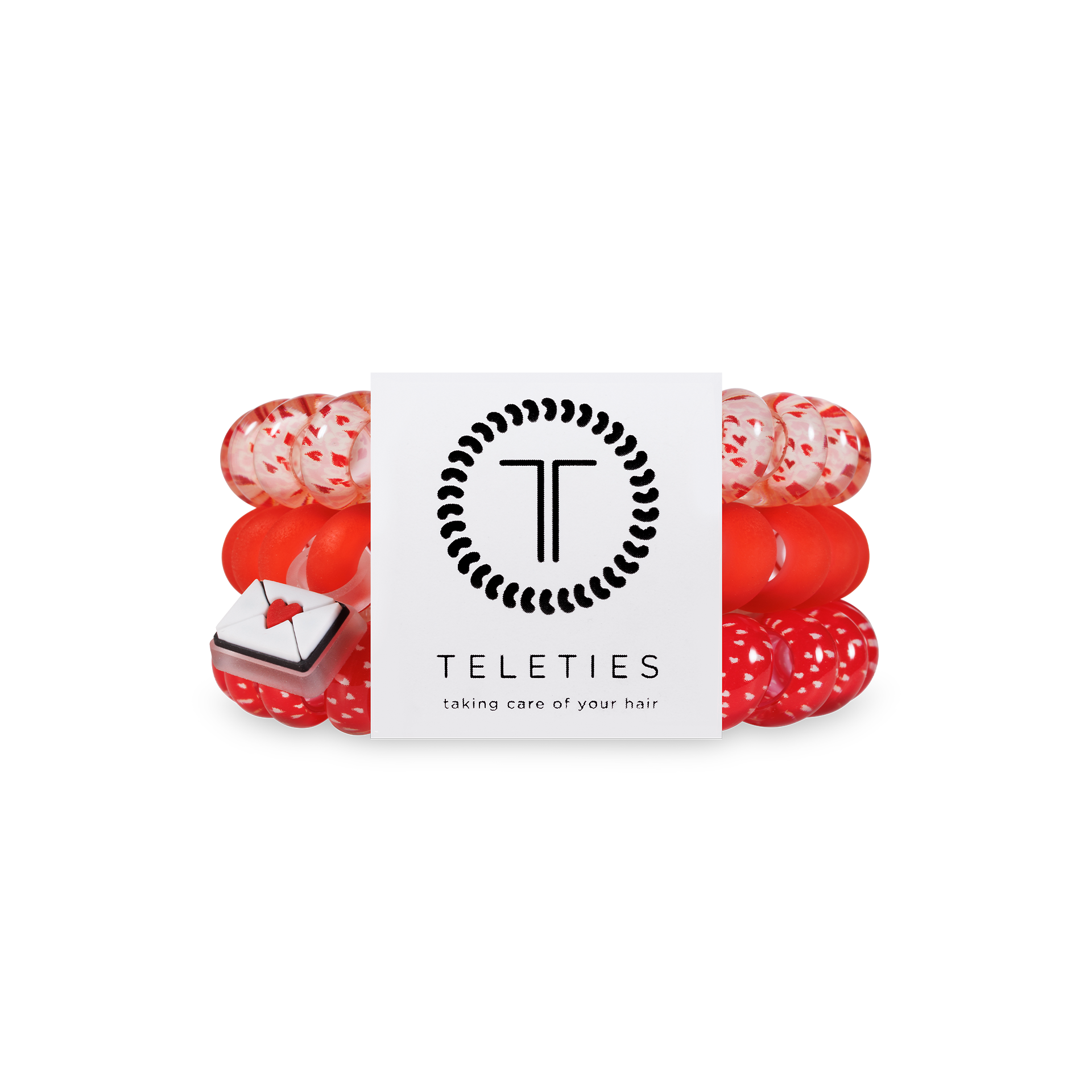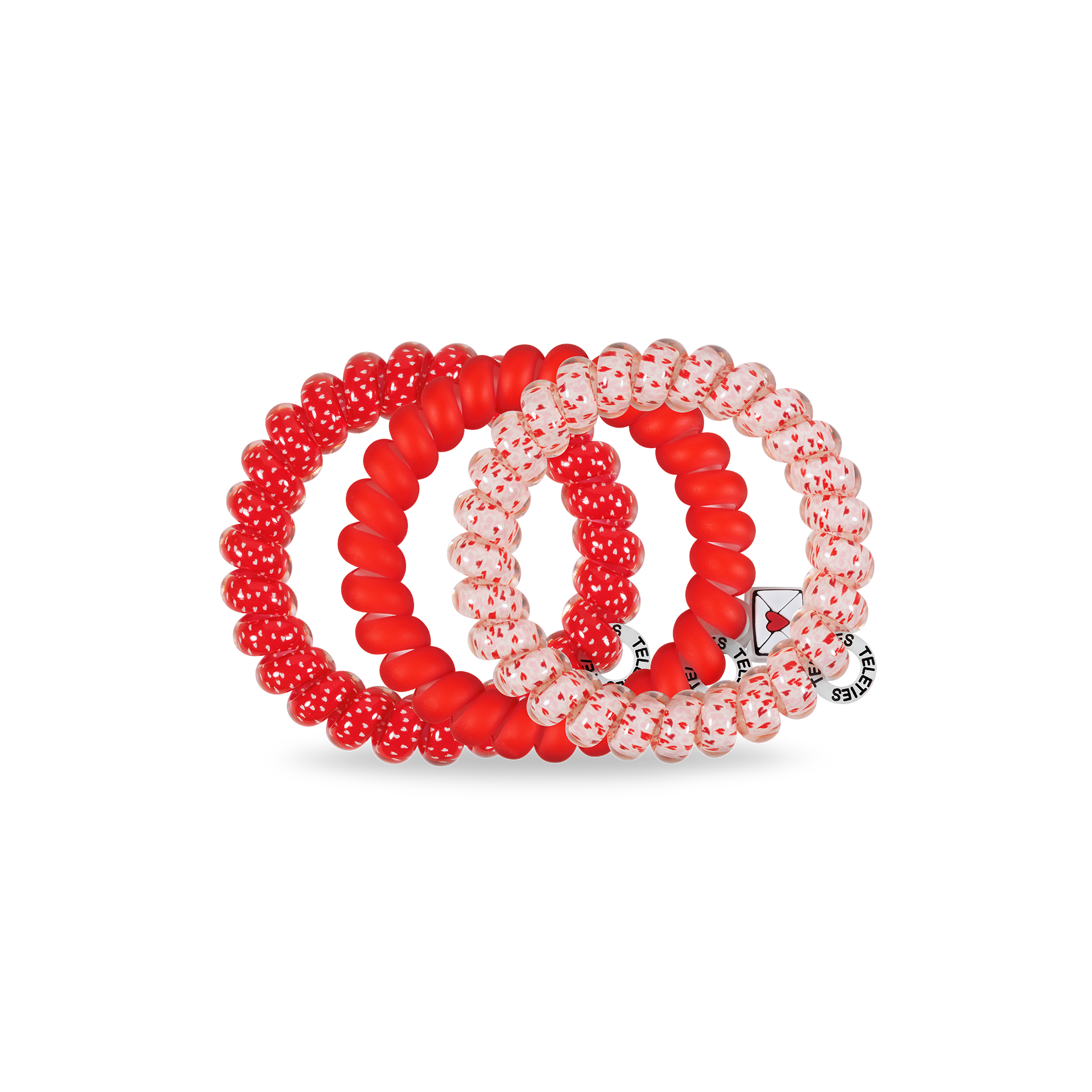 If you're looking for a fun and easy way to celebrate Valentine’s Day, the TELETIES Sealed with a Kiss Hair Ties have you covered! This three-pack is the perfect addition to any love note that you’re sending to your besties. Not just cute, but practical, these hair ties are perfect for any occasion, especially when you want to match your hair accessory to your Valentine's vibe. Key Features Strong Grip: Specially Designed to keep your hair secure, so you can confidently and comfortably wear your hair up all day. No Rip: TELETIES not only secure your hair, but protect it as well Whether you're wearing them as a wrist accessory or using them, the Sealed with a Kiss Hair Ties will provide you with comfort, ease and a little touch of love! Sold in packs of three. The large size is 6.5cm wide x 1cm thick.