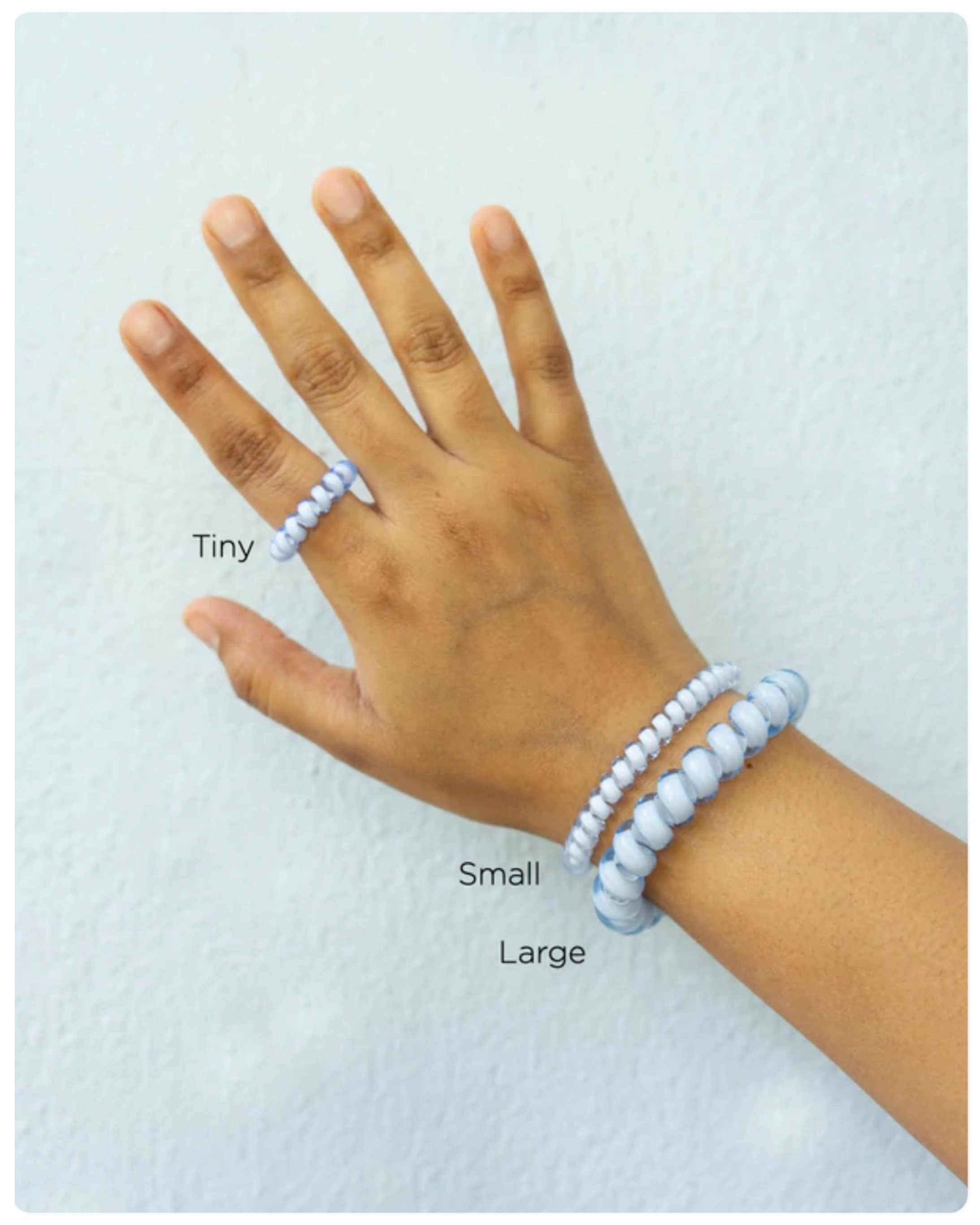 Hold your hair and enhance your style with TELETIES. The strong grip, no rip hair tie that doubles as a bracelet. Strong, pretty and stylish, TELETIES are designed to withstand everyday demands while taking your look to the next level. Sold in packs of three. The small size is 4.5cm wide x 0.5cm thick.