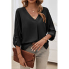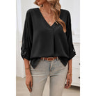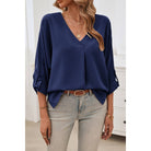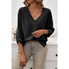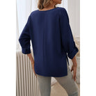 Deep V Neck Drop Shoulder Solid Loose Top *Sales Final*