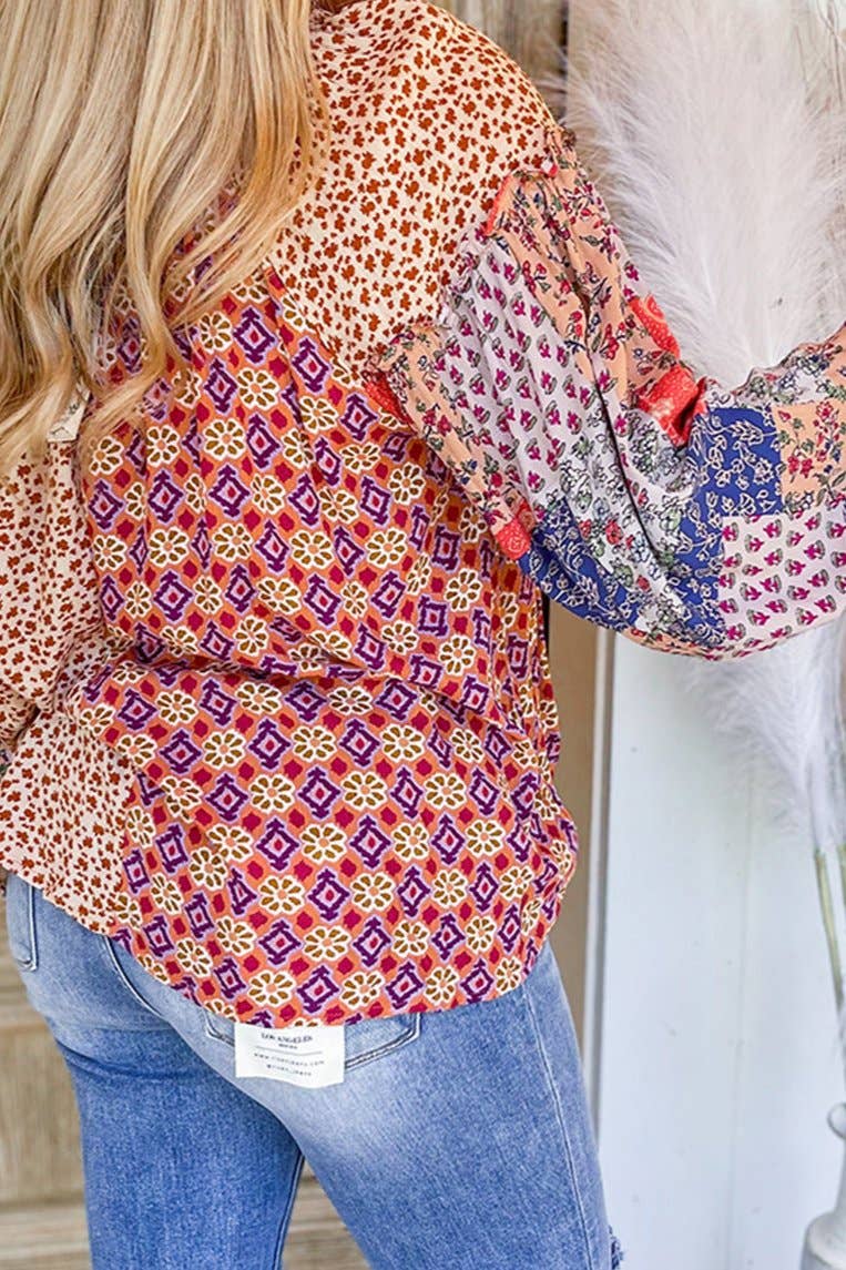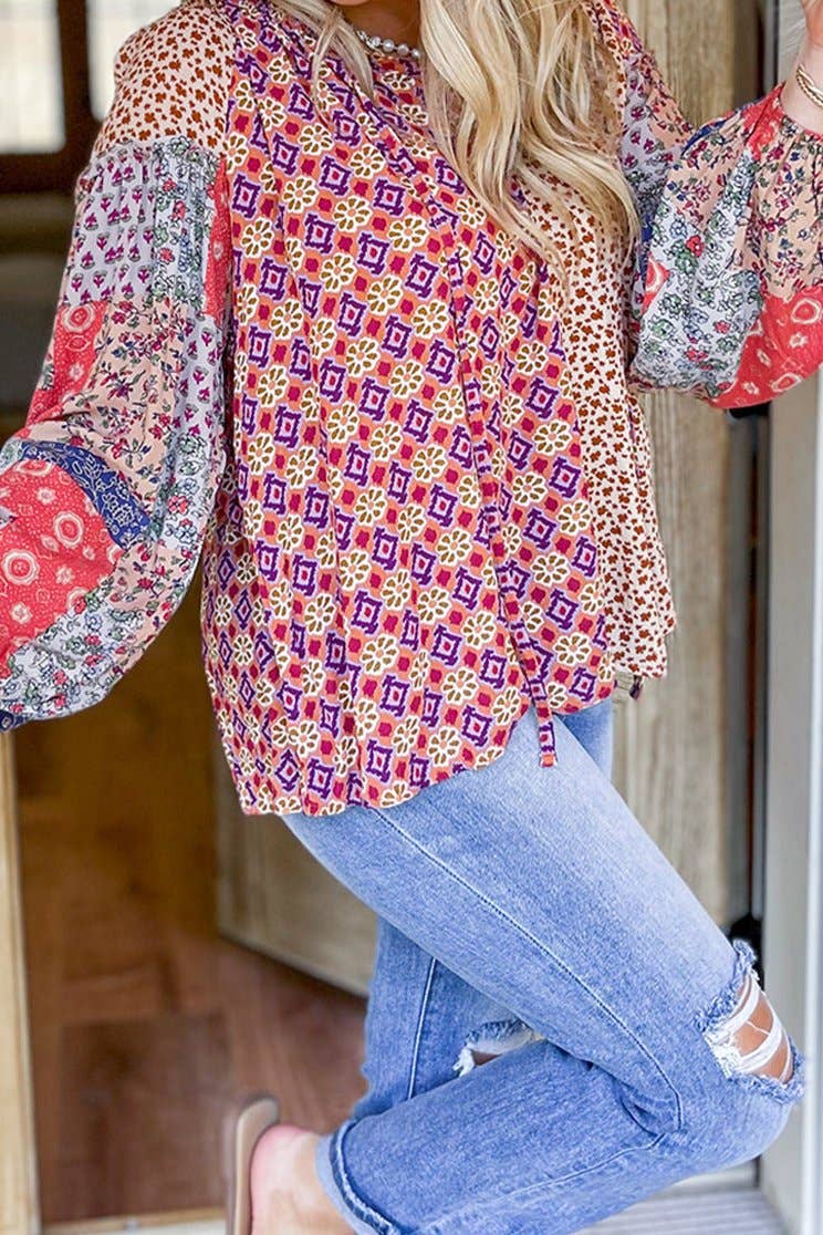 Floral Long Sleeve Tied V-Neck Blouse *Sales Final*
