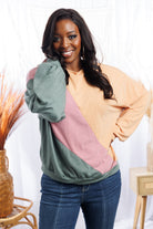 Welcome spring in style with this cheerful pullover. It has a relaxed fit, a crew neck, and is spruced up with a diagonal color block. Long cuffed sleeves and banded hem complete the look. Effortless yet stylish, it's sure to brighten your day!