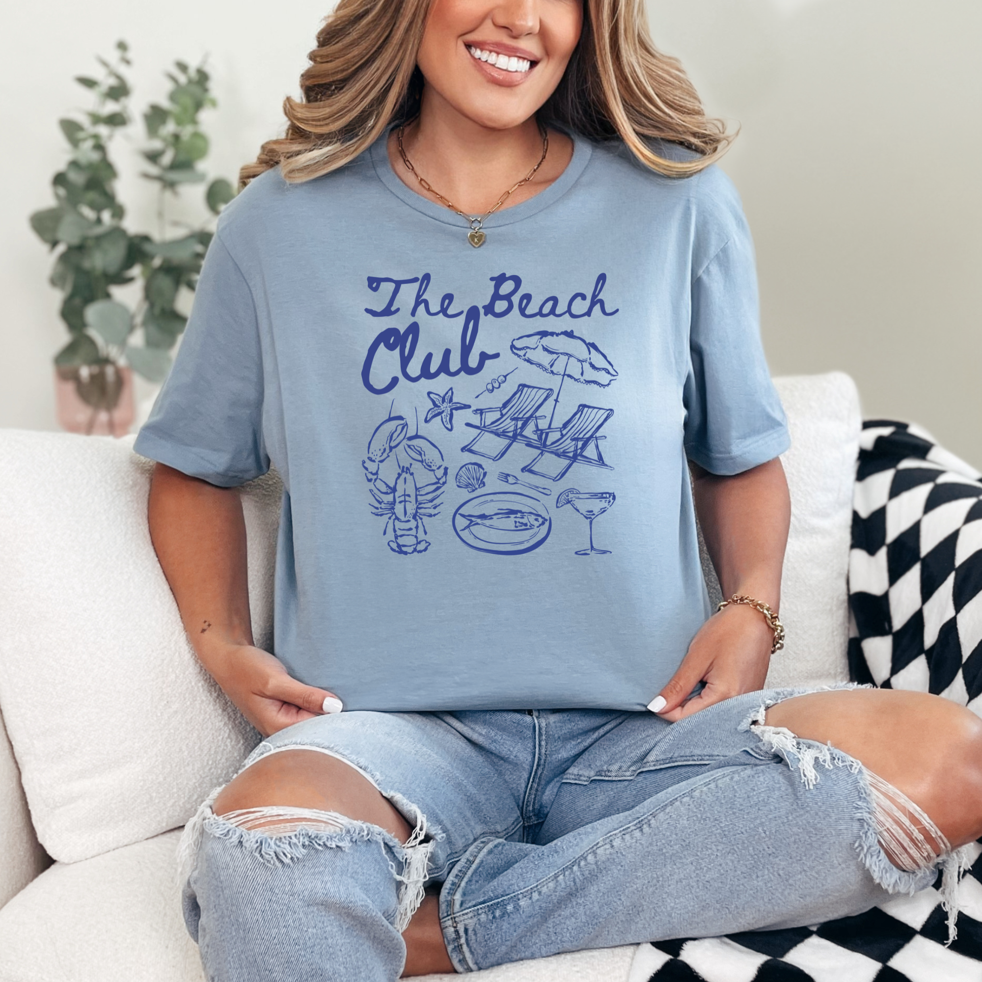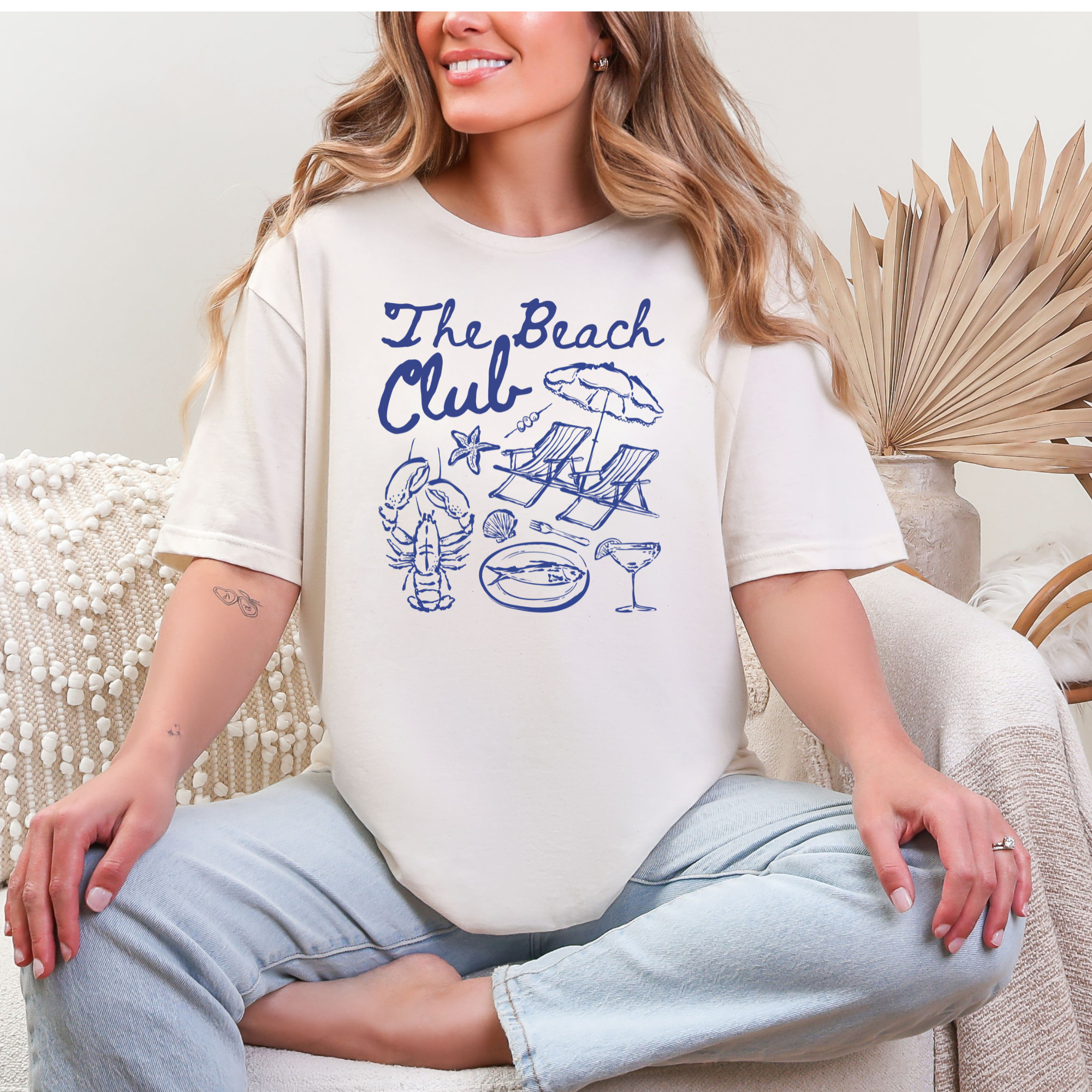 Join the fun with The Beach Club graphic tee! This playful shirt brings all the sunny vibes of your favorite seaside hangout, perfect for beach days, boardwalk strolls, or casual get-togethers. Wear it and instantly feel like part of the coolest crew by the shore!