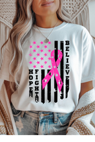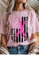 This Breast Cancer Awareness Graphic Tee features comfortable short sleeves and a modest round neckline, perfect for showing faith and support. Designed to inspire hope and strength, it serves as a meaningful reminder of courage through every challenge. Wear it as a symbol of prayerful solidarity and compassion.