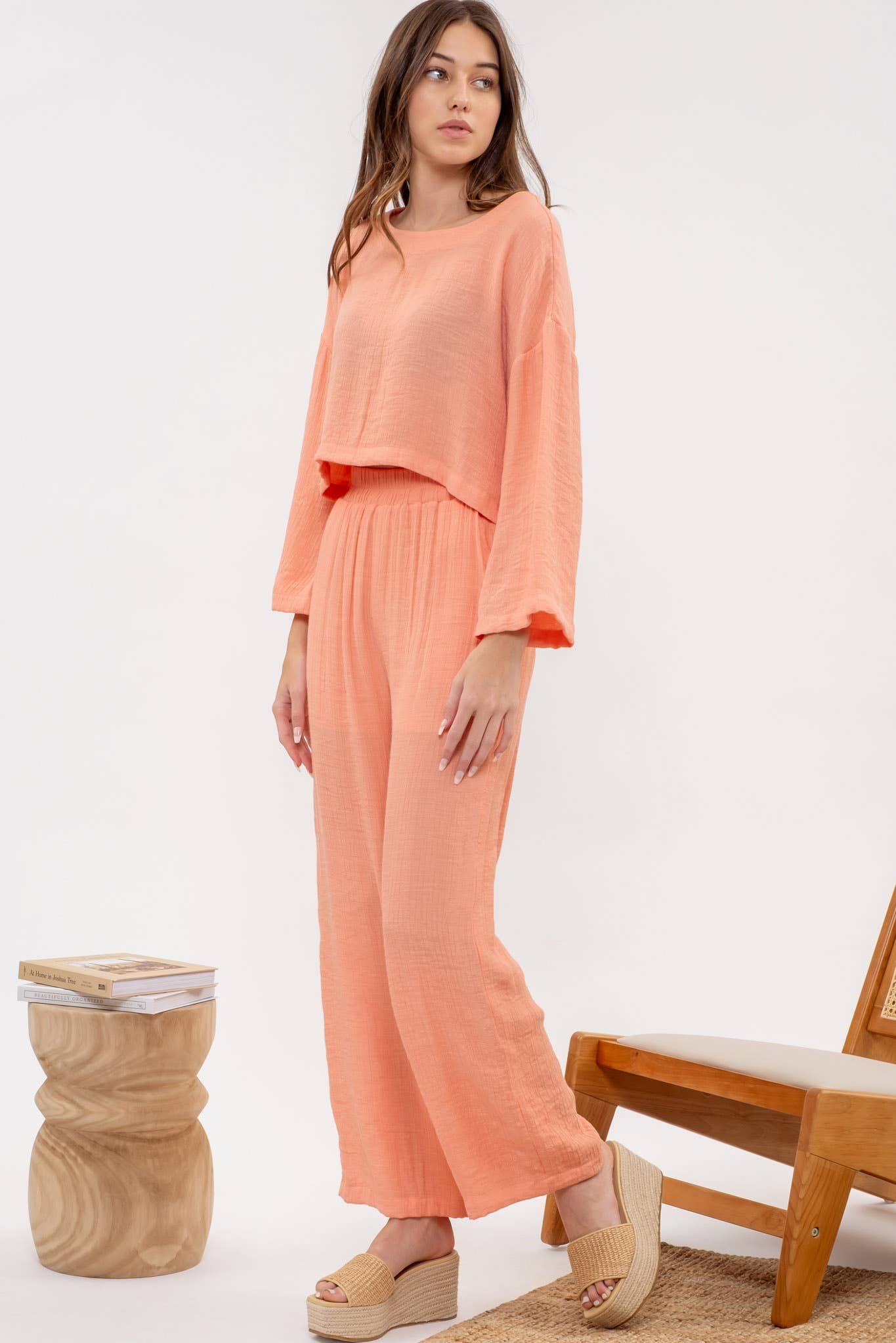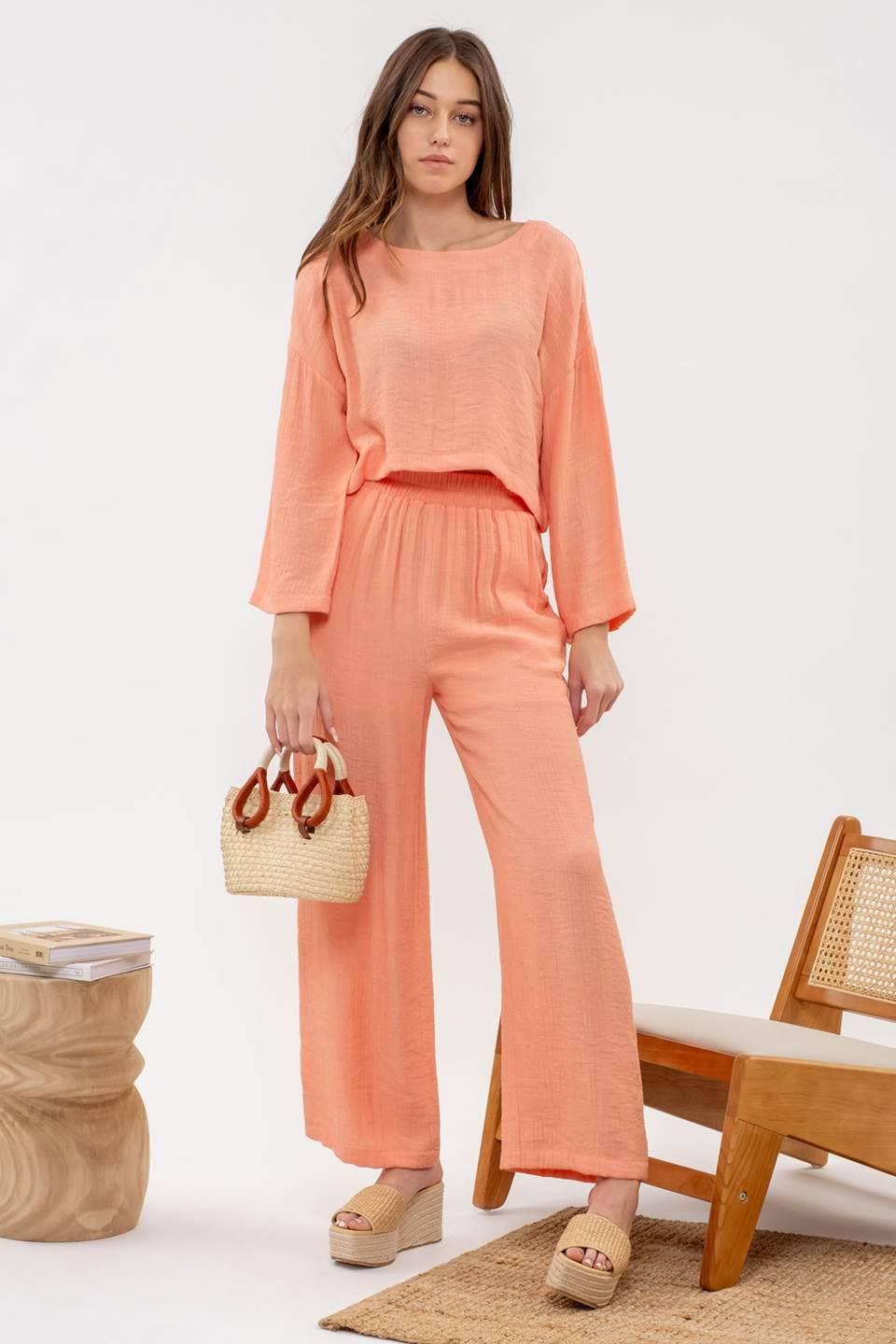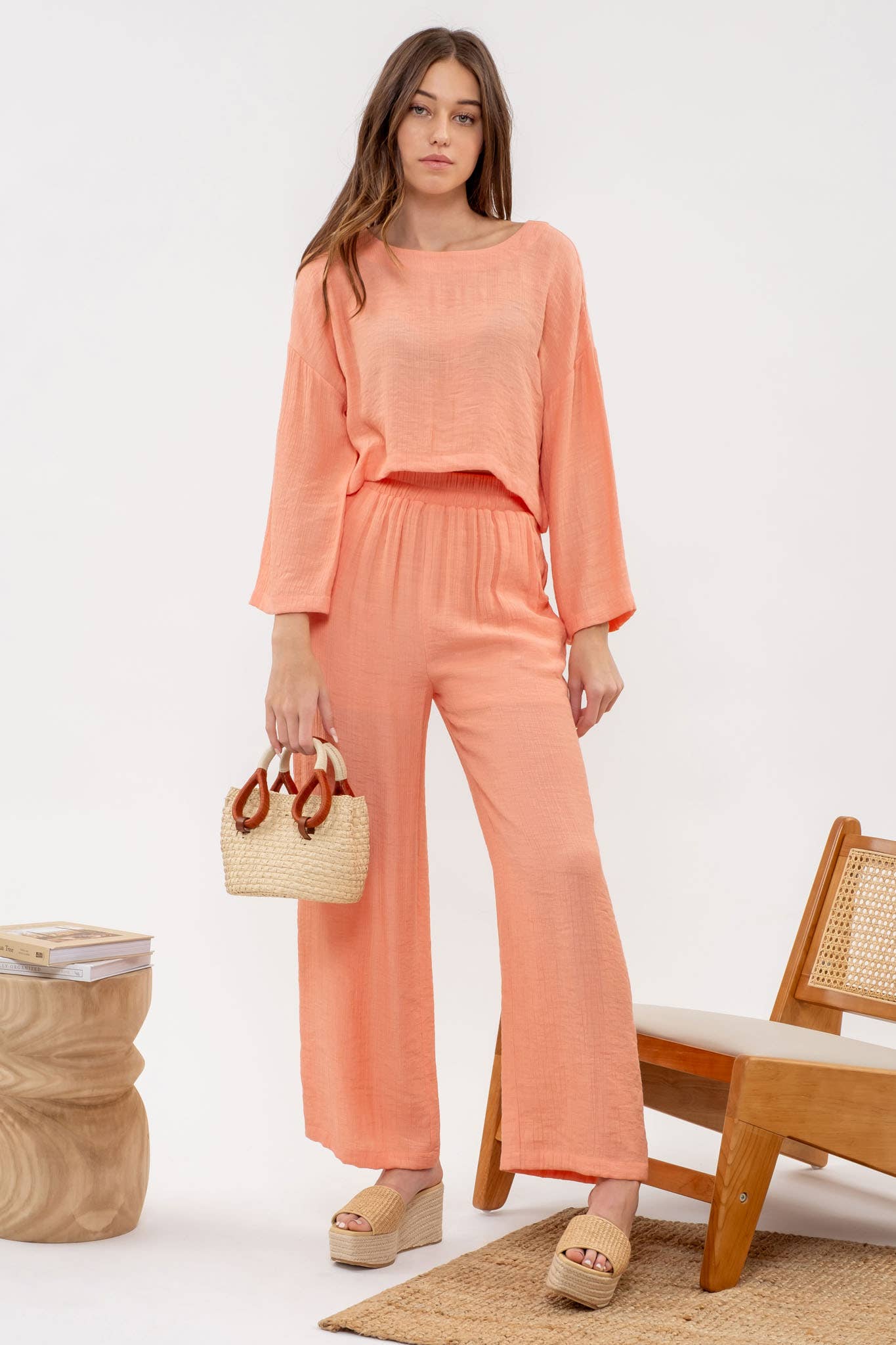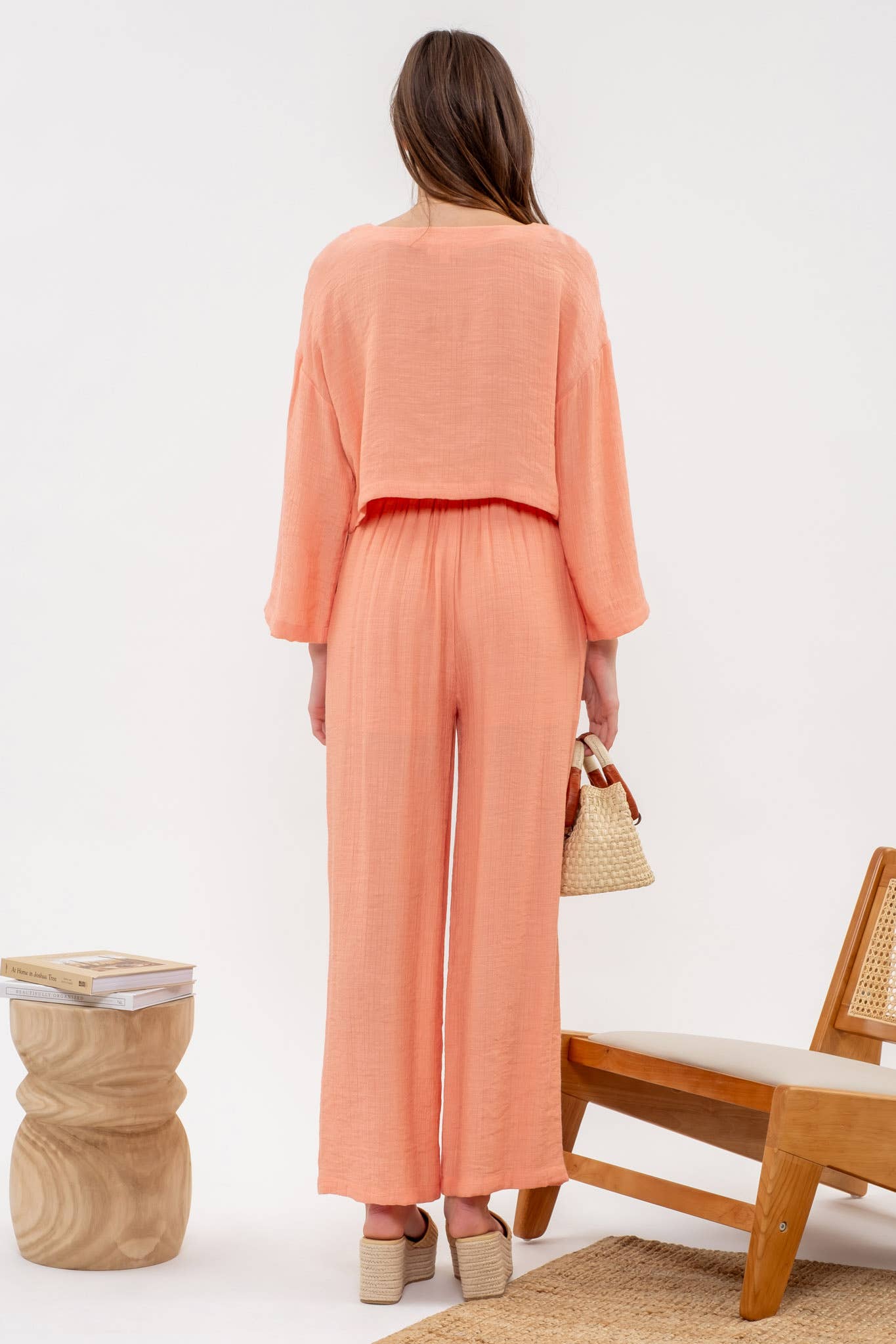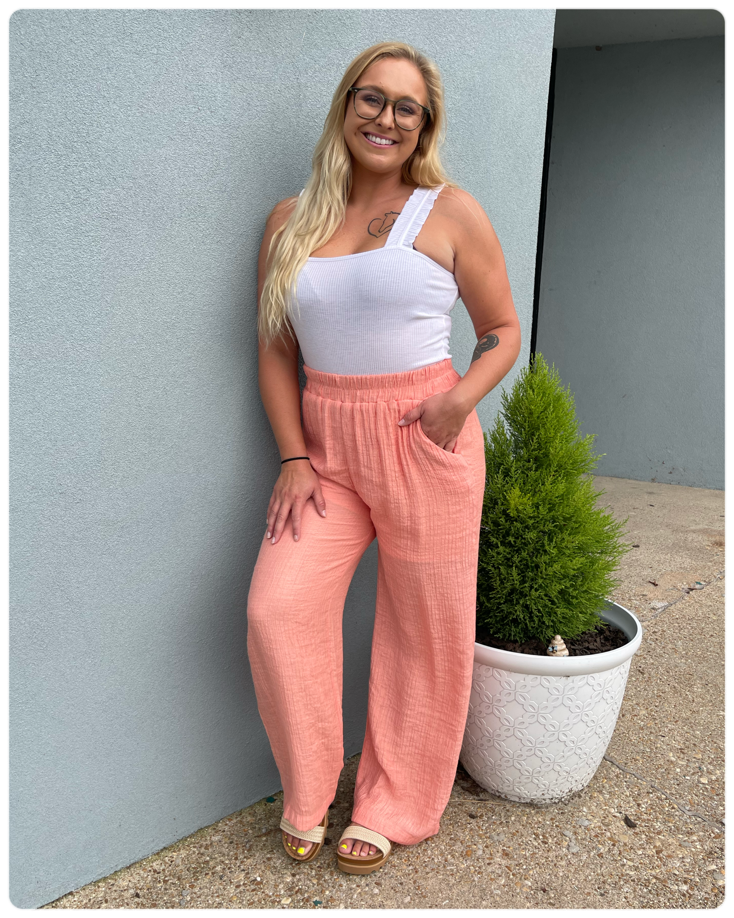 Mary ~ Lightweight High Rise Pants - Dusty Peach