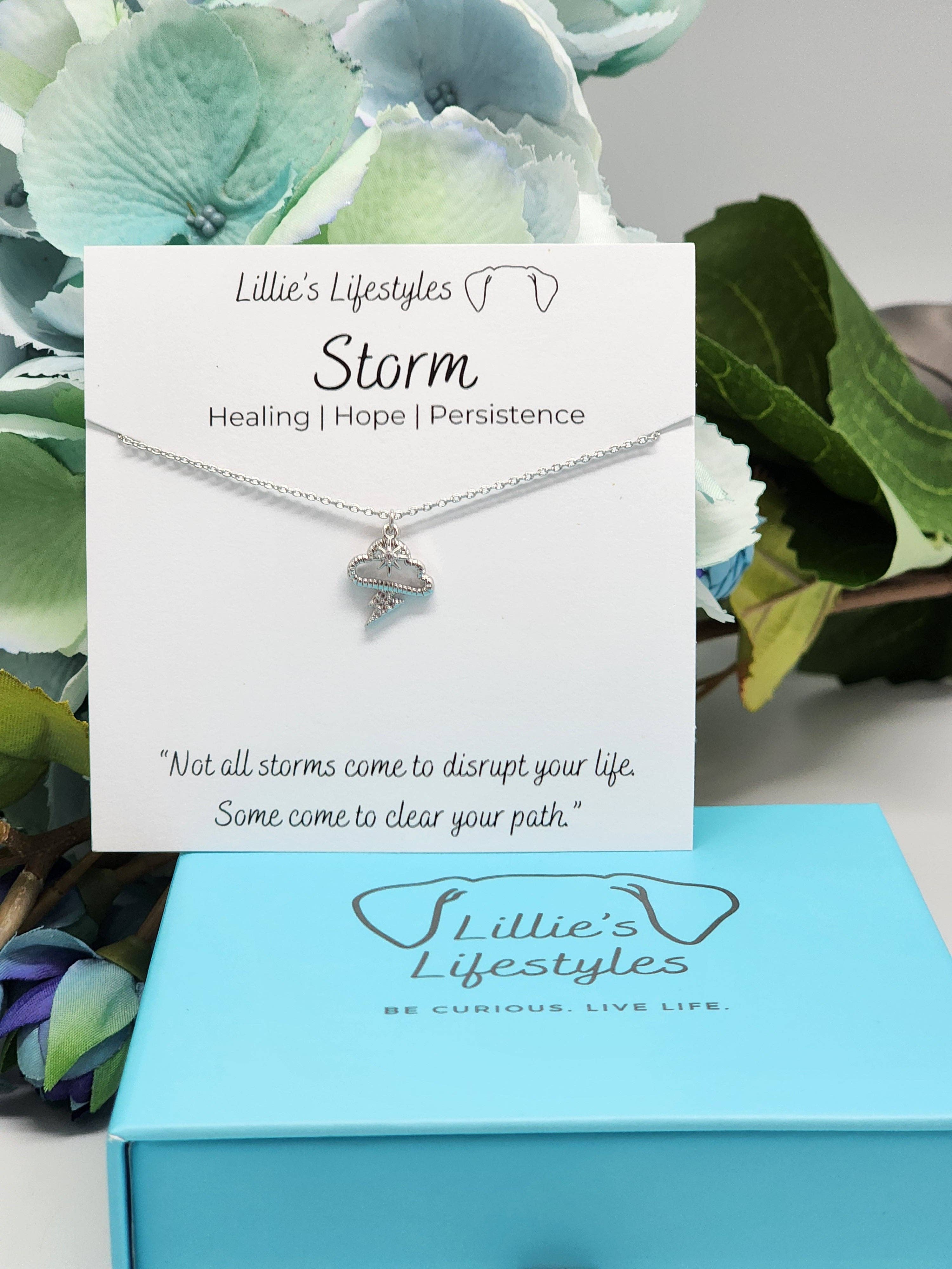 The Storm Necklace from Lillie's Lifestyles is a great reminder that some of life's storms are actually blessings in disguise. The Storm pendant represents Healing, Hope and Persistence. “Not all storms come to disrupt your life. Some come to clear your path.” All of our necklaces come with our signature gift box.