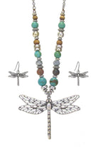 DRAGONFLY PENDANT BEAD CHAIN NECKLACE SET