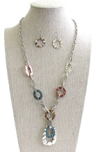 TEXTURED METAL RING AND CHAIN LINK NECKLACE SET - LENGTH 20 INCHES EXTEND TO 22 INCHES