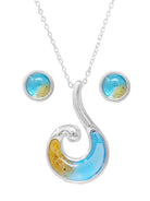 SEALIFE THEME SAND AND OCEAN INSPIRED NECKLACE SET - WAVE - PENDANT 1 X 1 3/4 INCHES LENGTH 18 INCHES EXTEND TO 21 INCHES