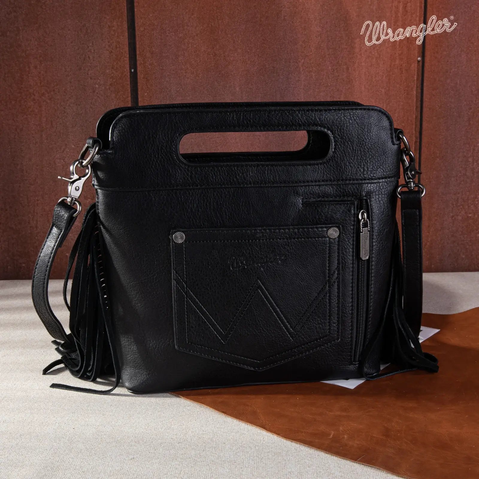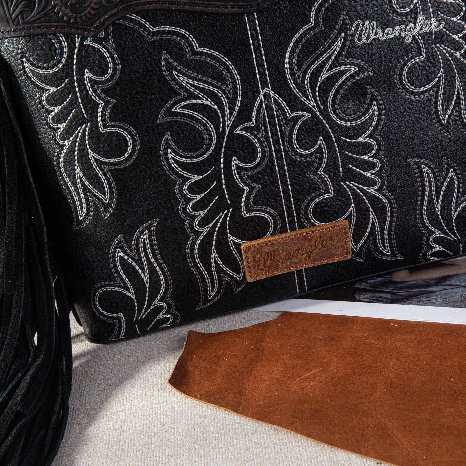 Wrangler Top Handle Embroidered Fringe Tote/Crossbody -