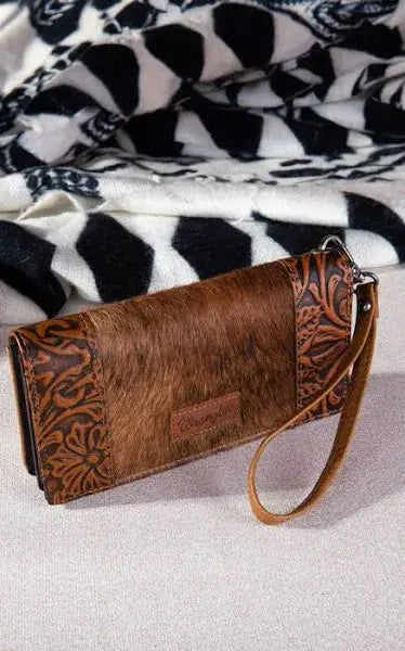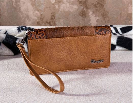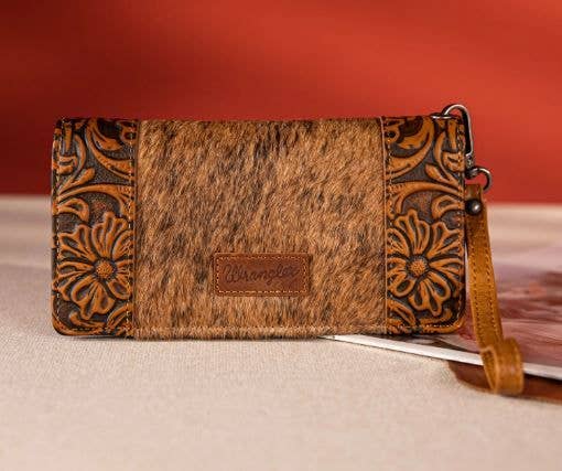 Wrangler Hair-On Cowhide Vintage Floral Tooled Wallet