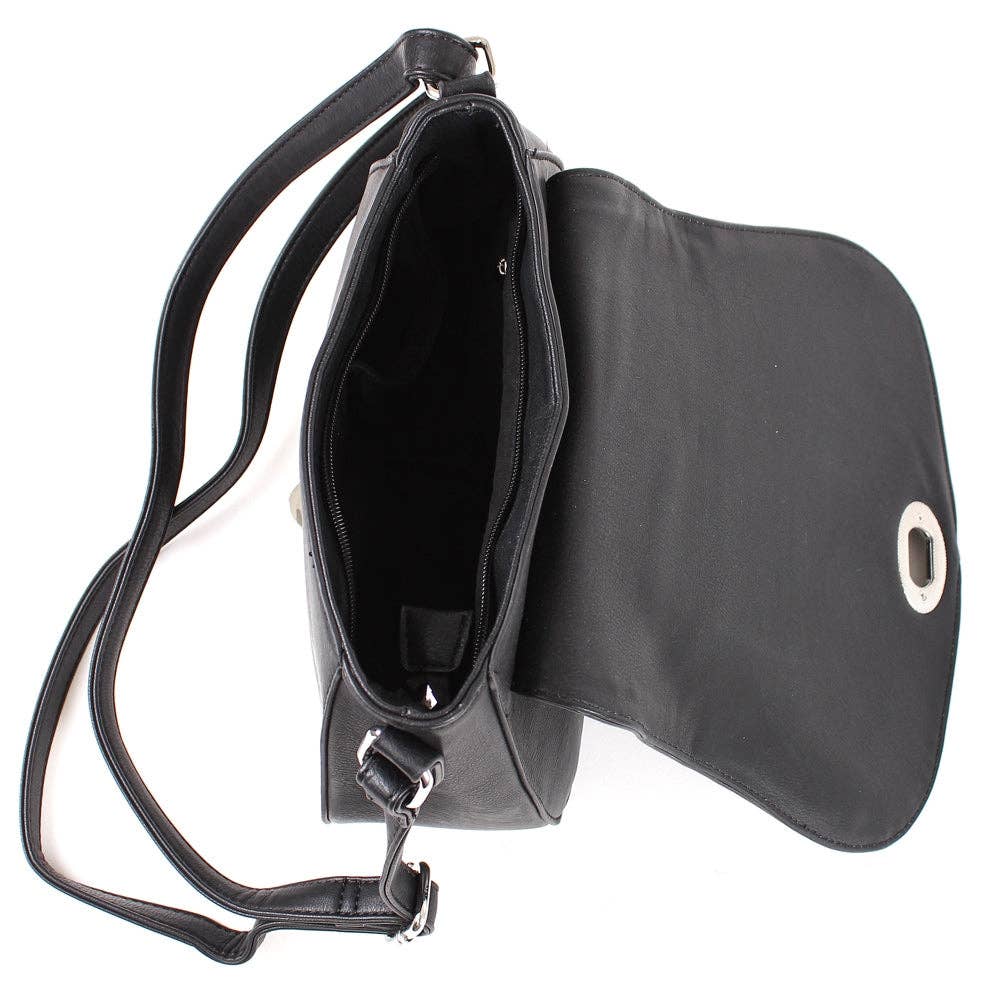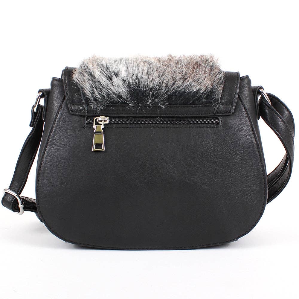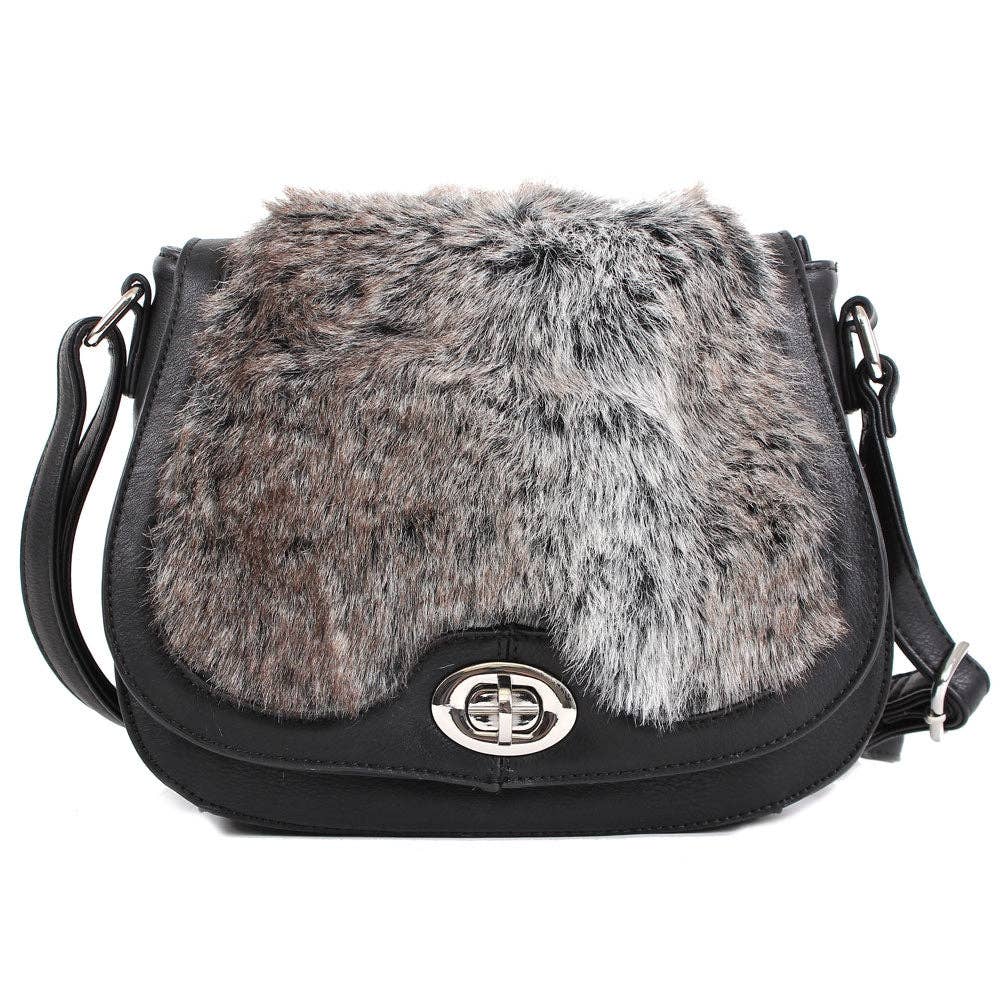 Look your most fashionable when you step out with this tricolor faux-fur turn clasp saddle crossbody!