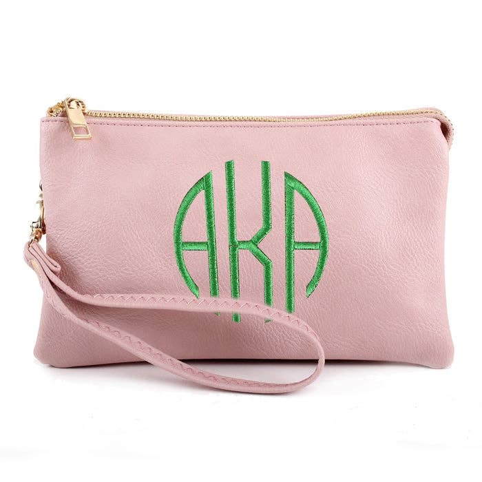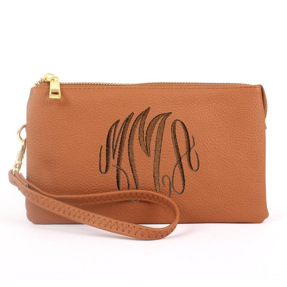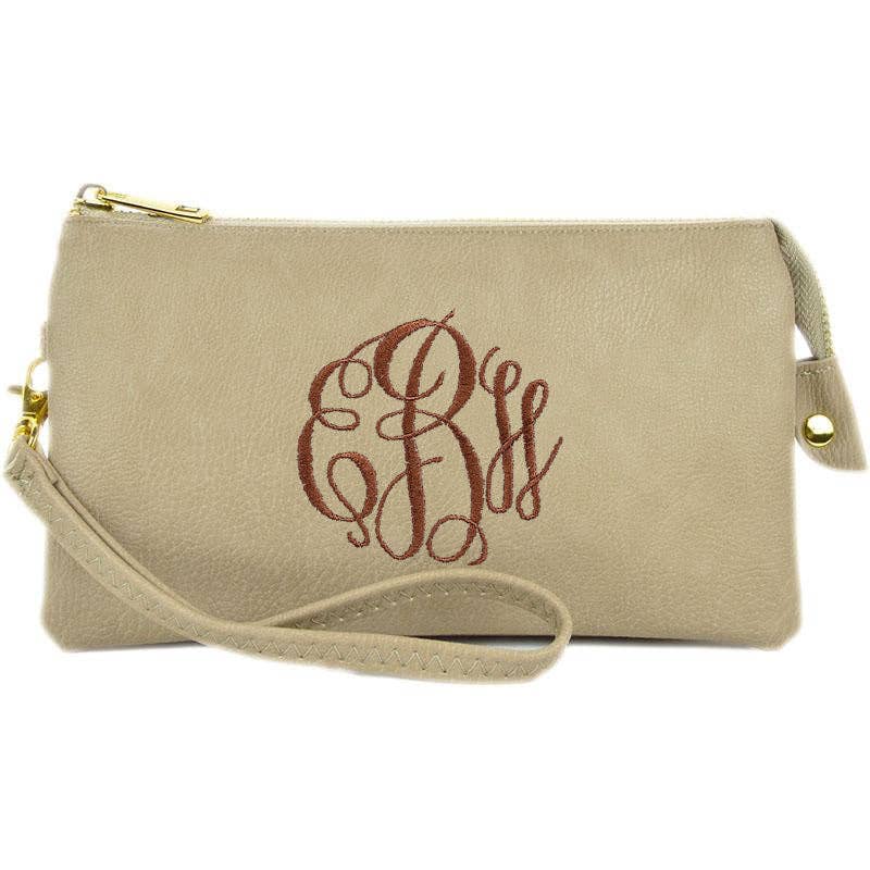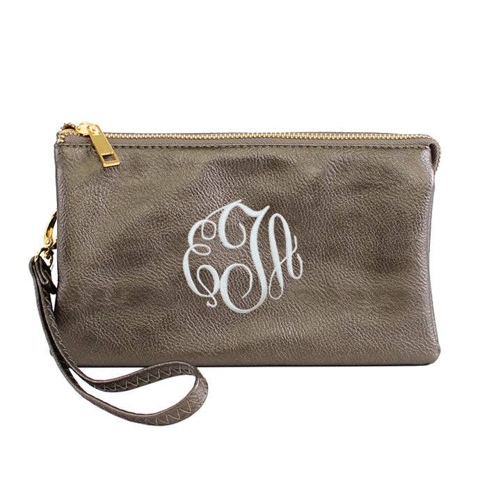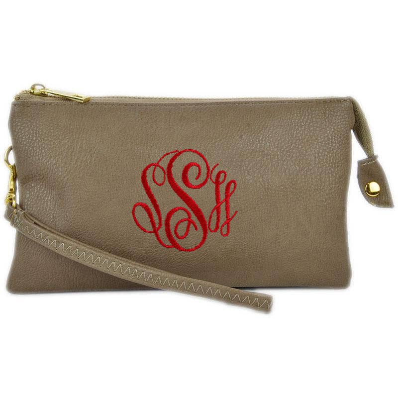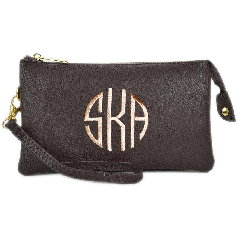 A clutch, a crossbody bag, and a wristlet all in one. Monogrammed they make the most darling accessory to any outfit.