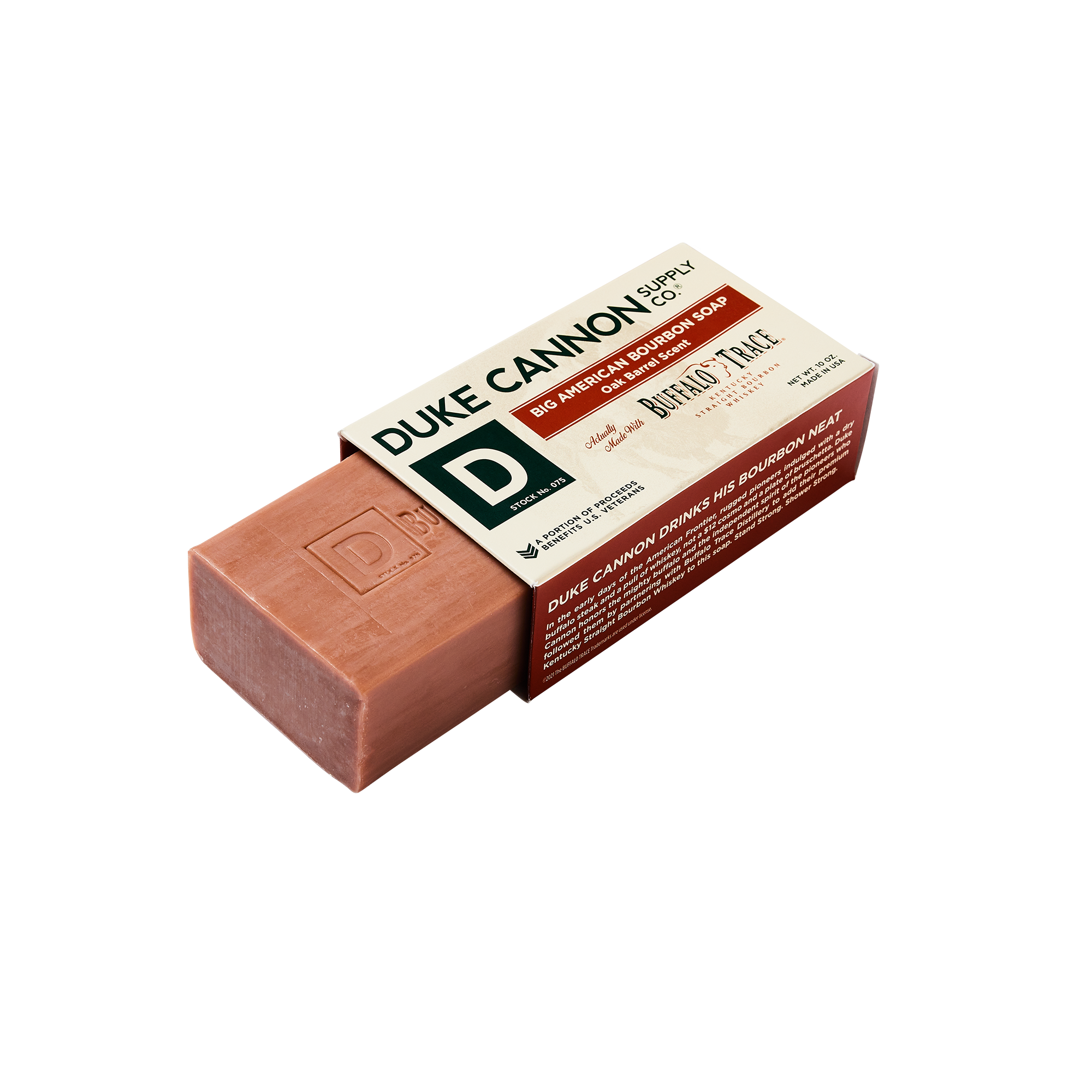 In the early days of the American Frontier, rugged pioneers indulged with a dry buffalo steak and a pull of whiskey, not $12 appletini and plate of bruschetta. Duke Cannon honors that independent, pioneering spirit by partnering with Buffalo Trace Distillery to add their award-winning Kentucky Straight Bourbon Whiskey to this Big American Bourbon Soap.