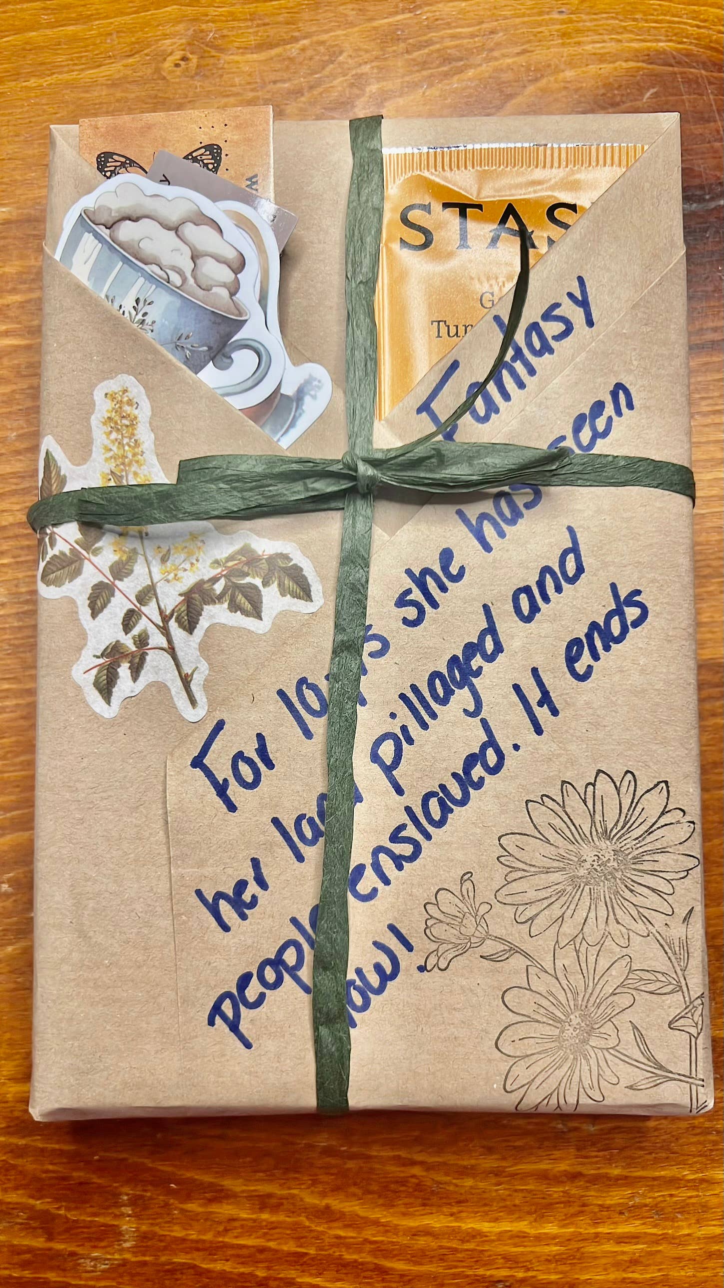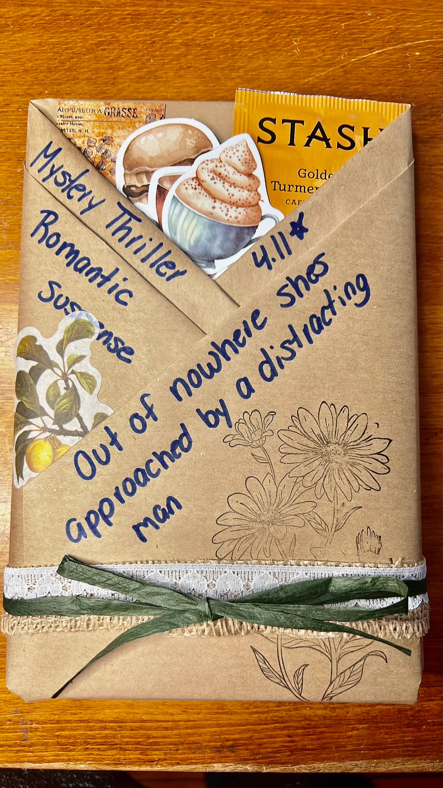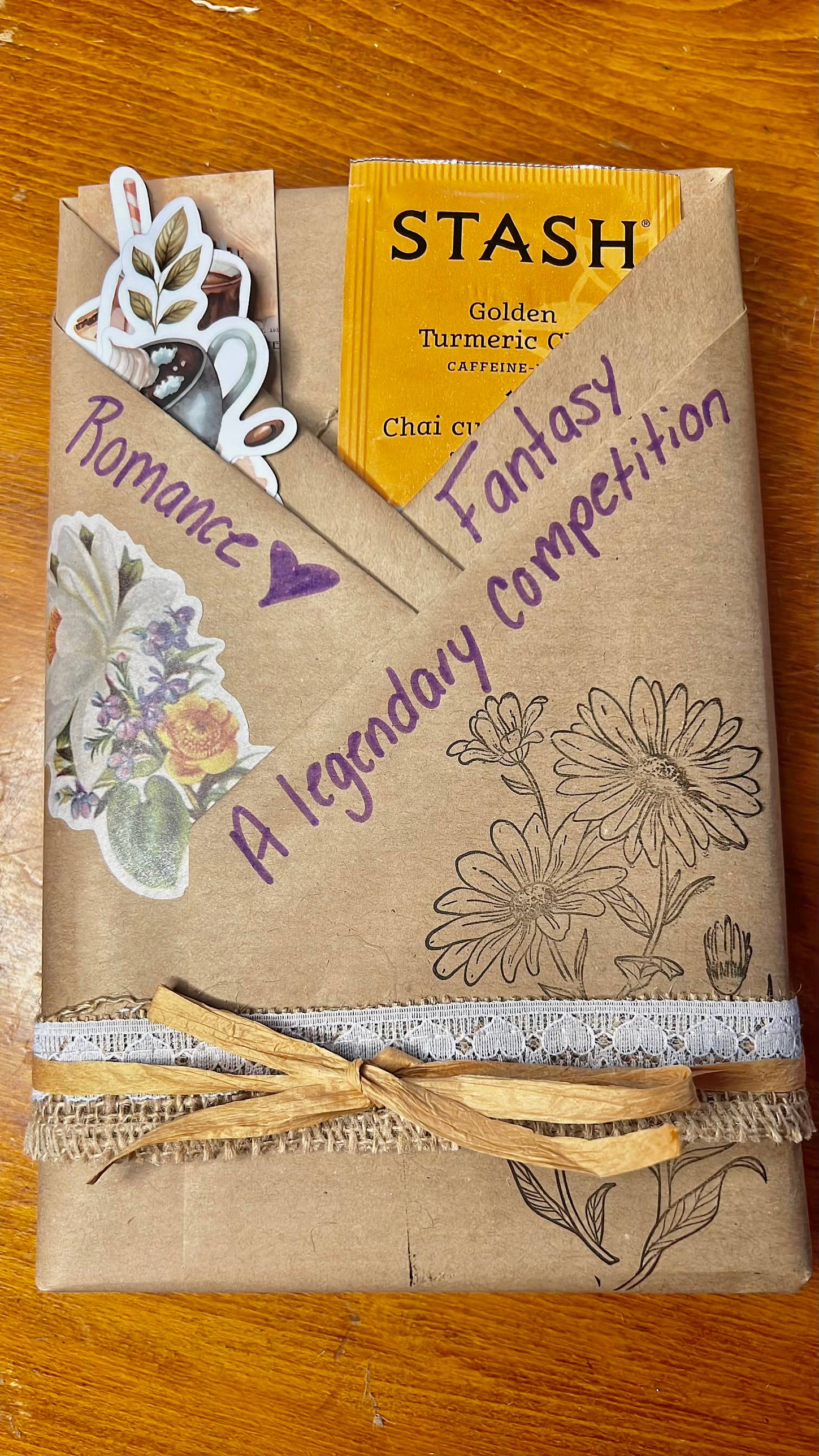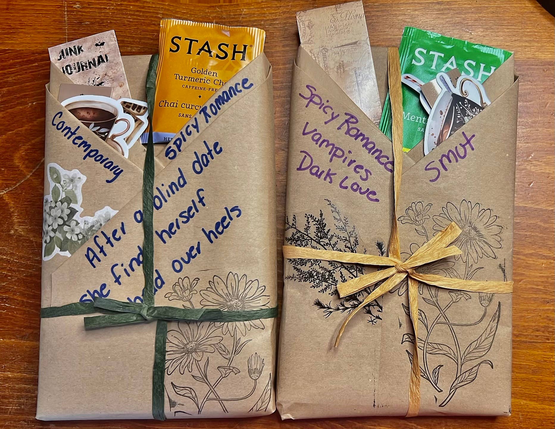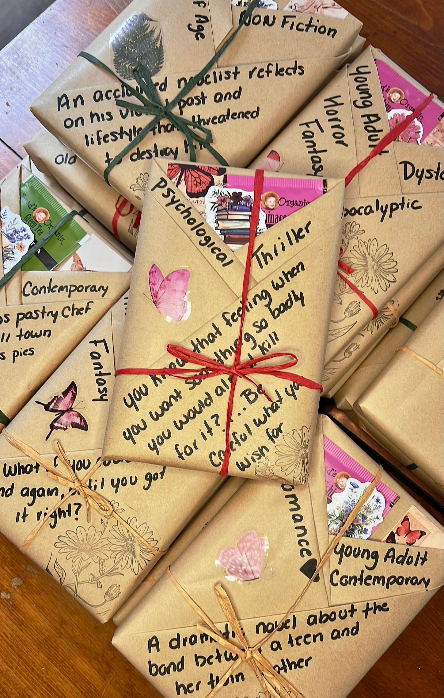 Each book will be wrapped and decorated. Each book will come with a bookmark, tea and sticker.