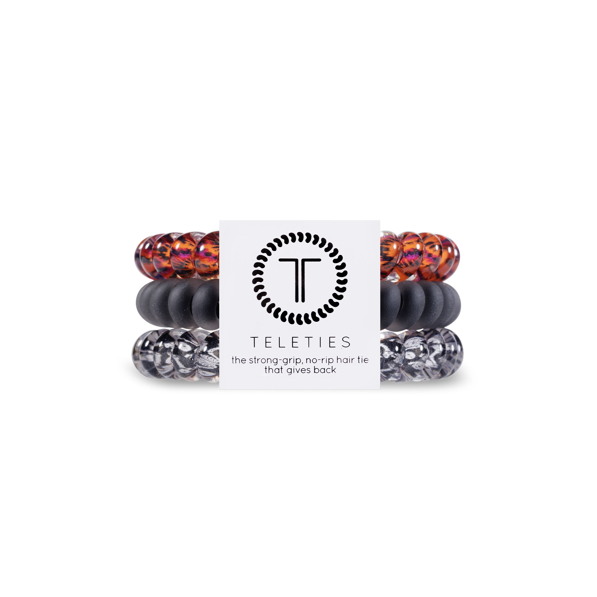 Hold your hair and enhance your style with our new Halloween TELETIES. The strong grip, no rip hair ties that double as a bracelet. Strong, pretty and stylish, TELETIES are designed to withstand everyday demands while taking your look to the next level.