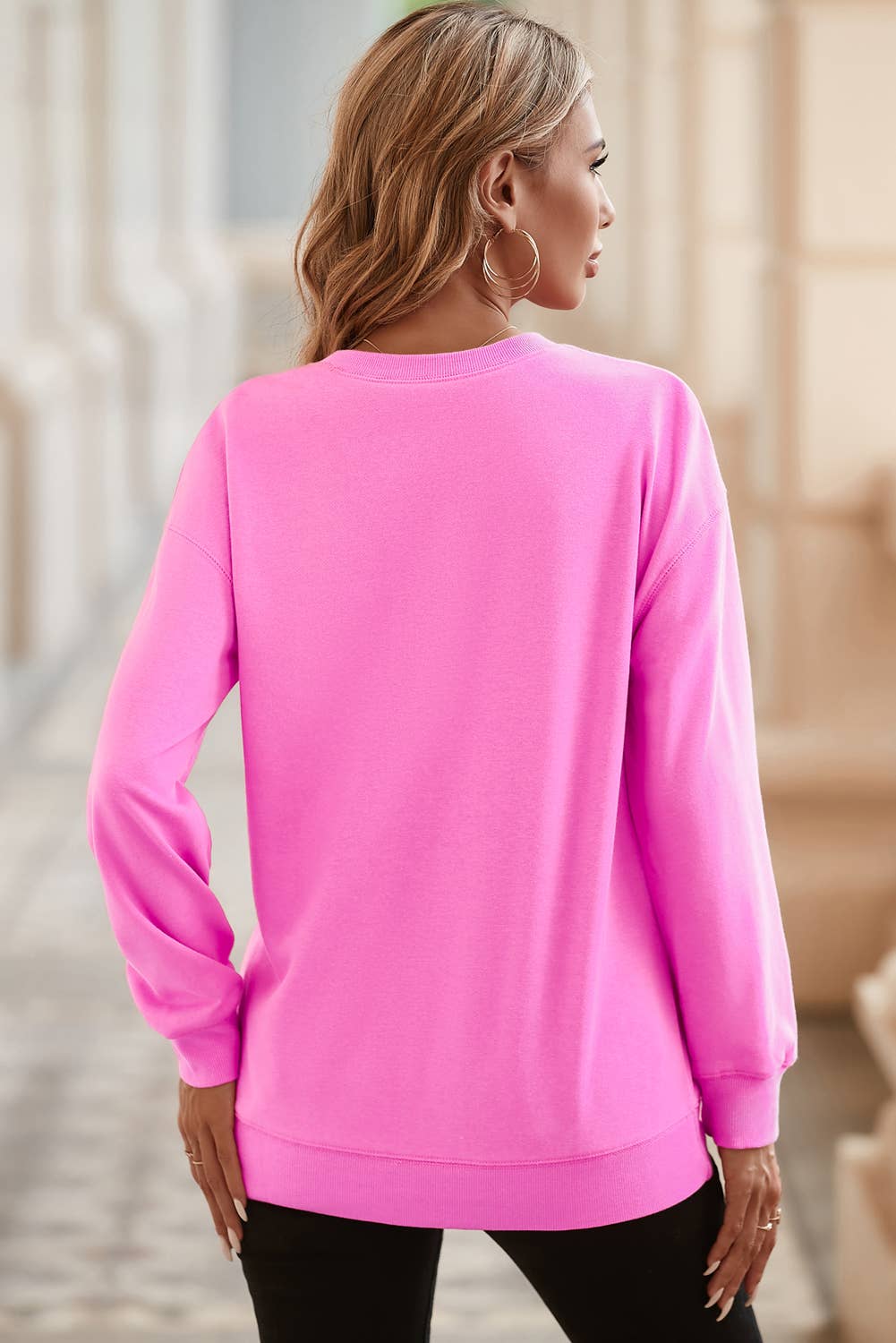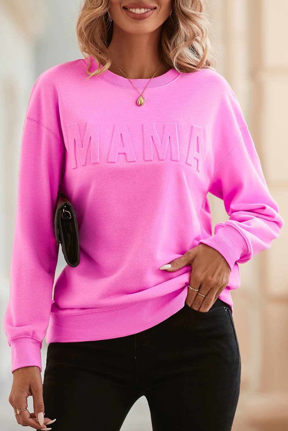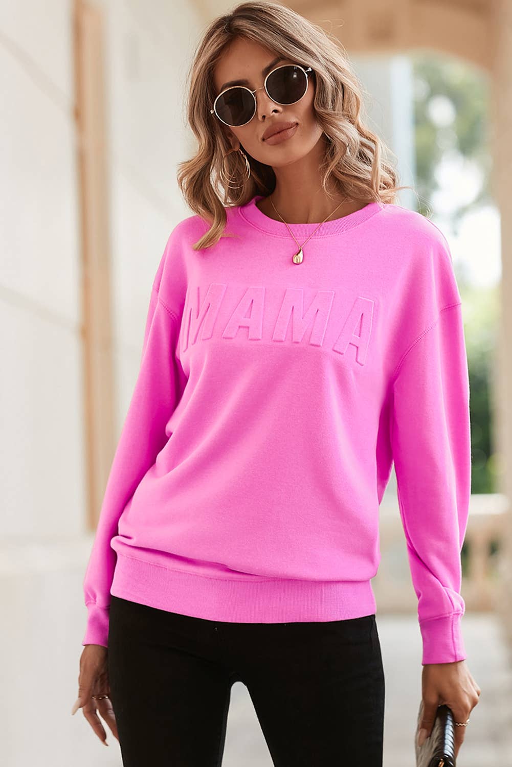 Bright Pink MAMA Letter Embossed Casual Sweatshirt: Bright Pink