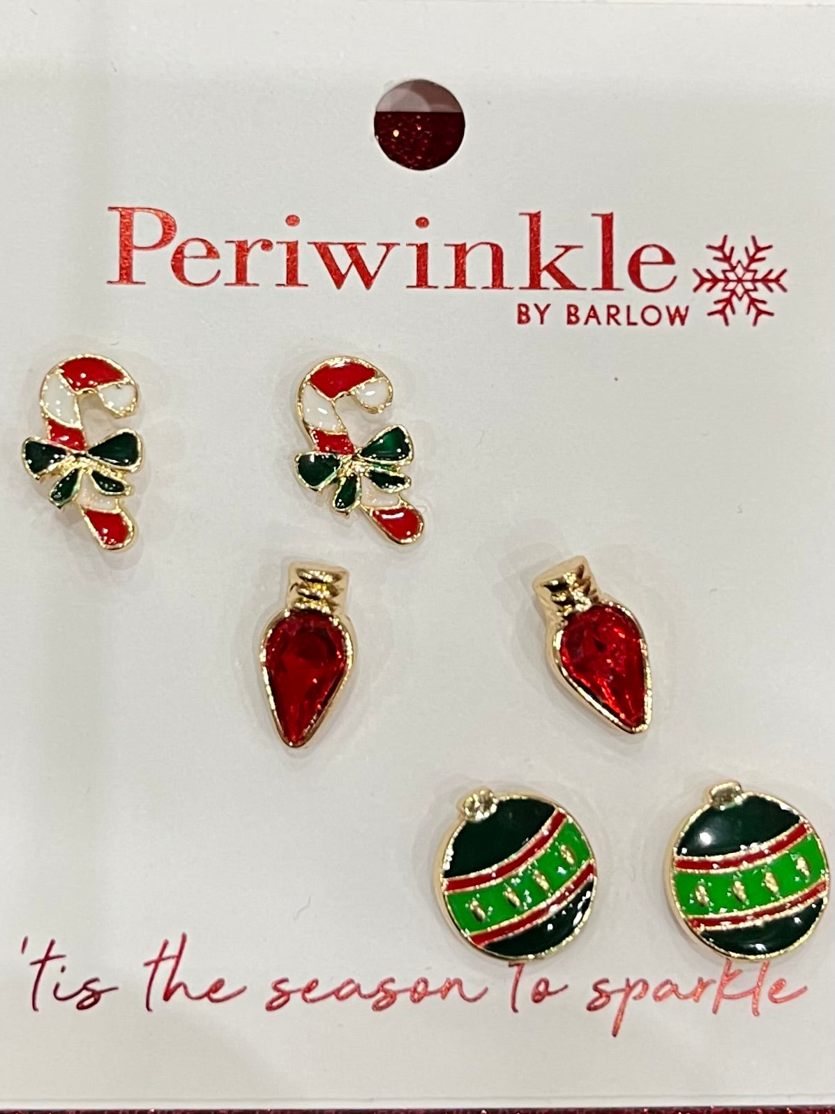 Candy Canes, Lights, Ornament, Stud Earrings Trio