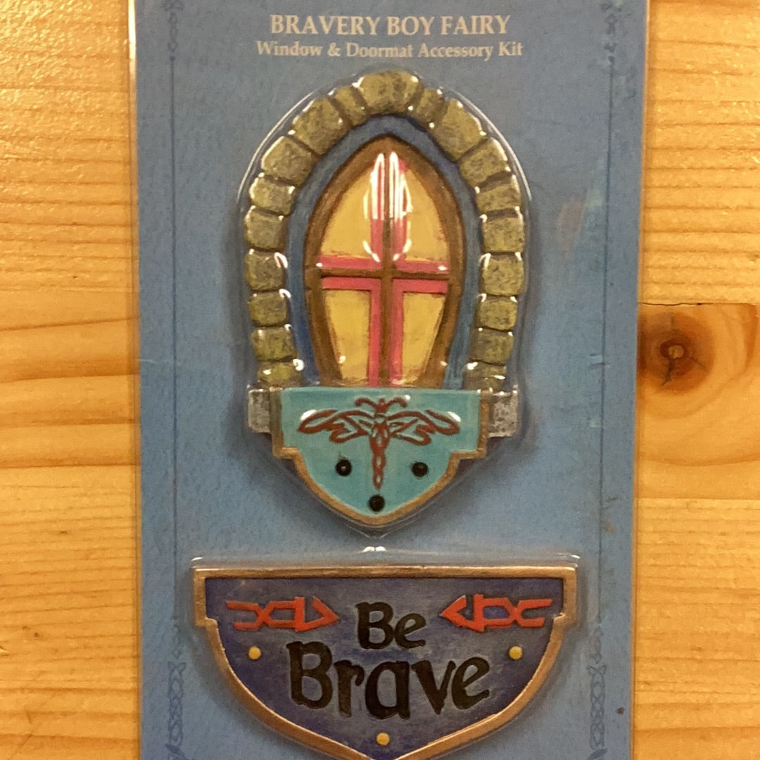 - 2 piece Magical Door accessory set includes one window with flower box and one doormat with “ be brave” sentiment.