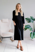 Step into effortless style with the Countdown Chic Dress. Its sleek black fabric and flattering boat neck create a timeless look, while the playful 3/4 sleeves add just the right touch of charm. The flowing silhouette moves with you, making it perfect for any occasion that calls for a bit of fun and flair.