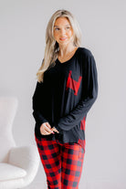 Cozy up with a touch of charm in our Fireside Checks Long Sleeve! Crafted from soft jersey knit, this top shows off a bold bulari plaid back panel and a stylish plaid pocket. The v-neck and dolphin hem add the perfect playful finish for a relaxed, fun look.