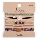 Our Flourish set is a tribute to growth, transformation, and natural beauty. These 5 hair tie bracelets feature a graceful blend of teal, black, and tan tones, accented with natural stone beads and a vibrant butterfly wing pattern. The delicate butterfly charm symbolizes change and confidence, reminding you to embrace your journey and flourish in your own unique way.