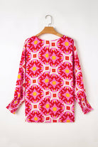 Geometric Shirred 3/4 Sleeve Blouse *Final Sale*