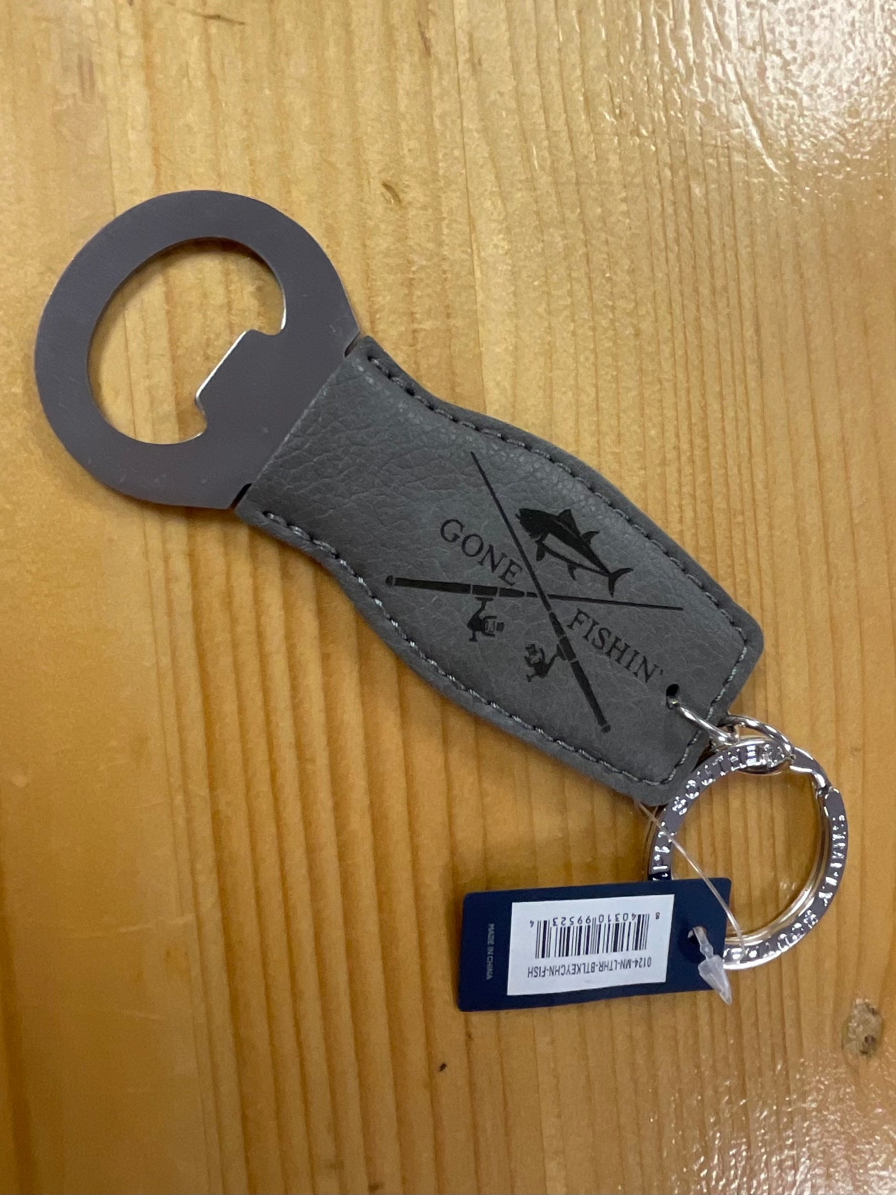 Catch the perfect gift for the fisherman in your life! Our "Gone Fishin" Bottle Opener Keychain features a durable leather keychain with both a gray and colorful bottle opener attached. This quirky keychain will keep them prepared for cracking open a cold one while out on the water.