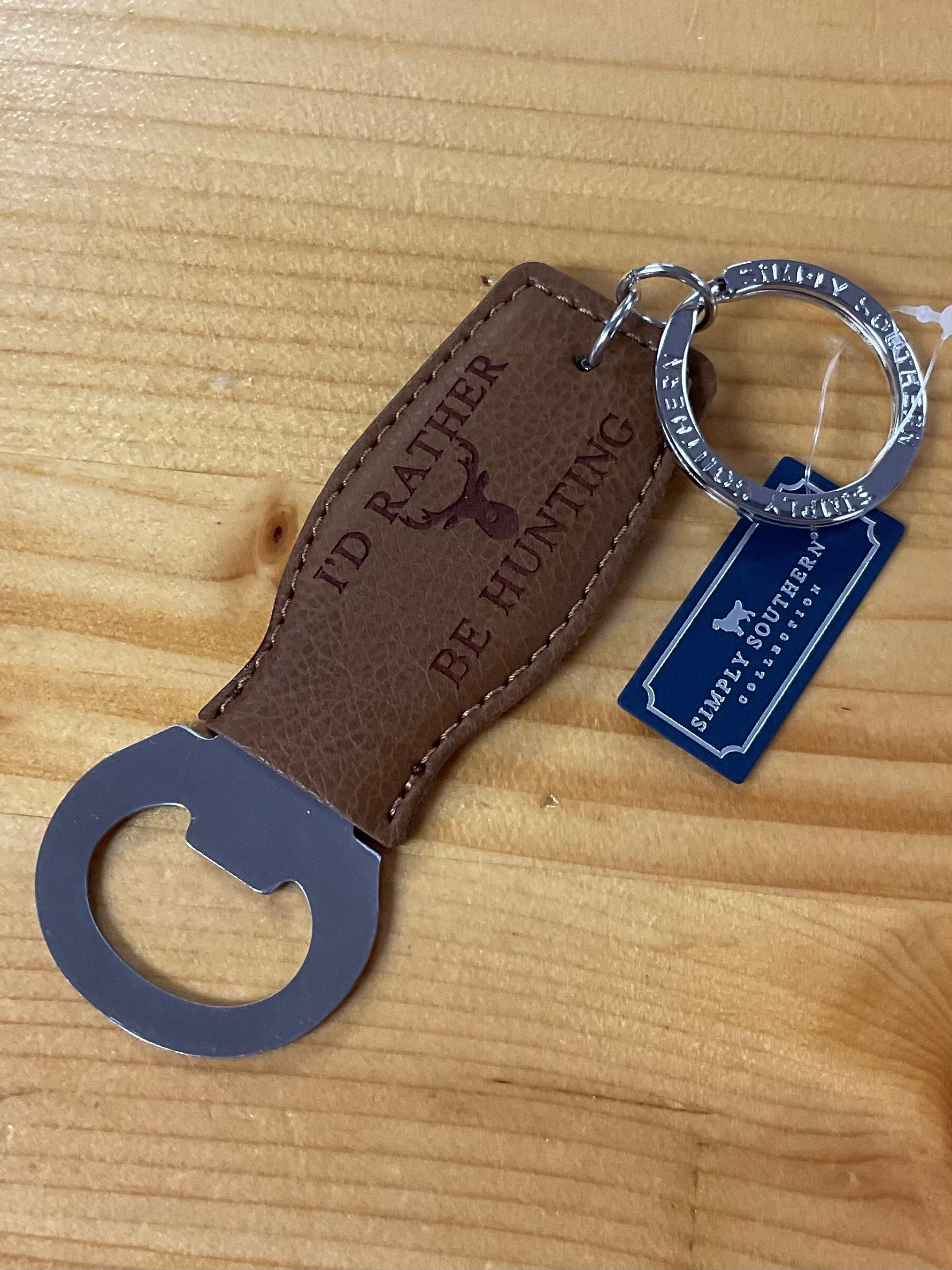 Get your beloved hunter a stylish and functional gift with our "I’d Rather Be Hunting" Bottle Opener Keychain. Crafted from Brown leather, this keychain not only holds your keys but also has a bottle opener attached - perfect for cracking open a cold one during downtime. Show them you care with this quirky keychain.