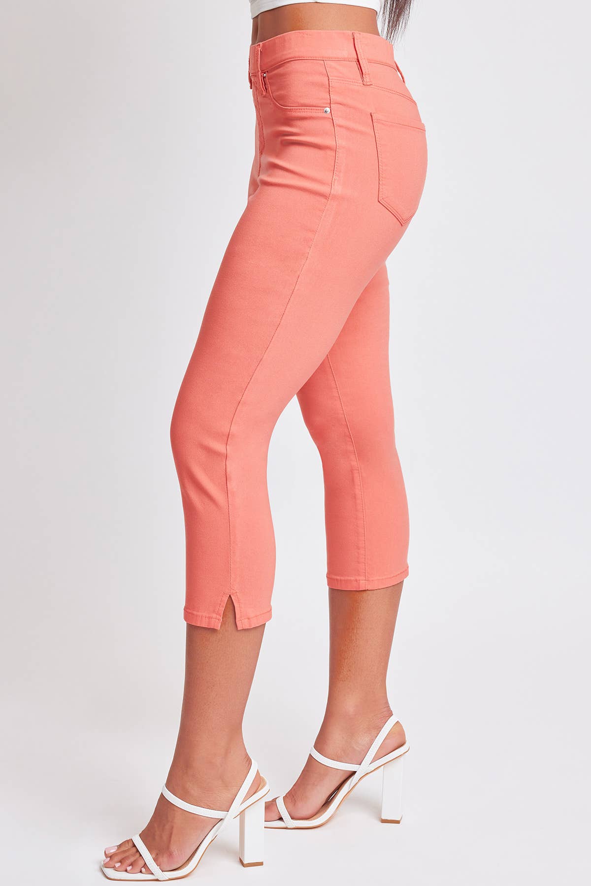 Looking for a flattering and comfortable capri? Look no further! Our Junior Hyperstretch Pull On Capri With Side Slit is made with our most stretchy and flexible fabric, making them perfect for all day wear. They feature front faux pockets for a smoothing effect, and functioning back pockets for the essentials! Available in a variety of colors for you to choose from!