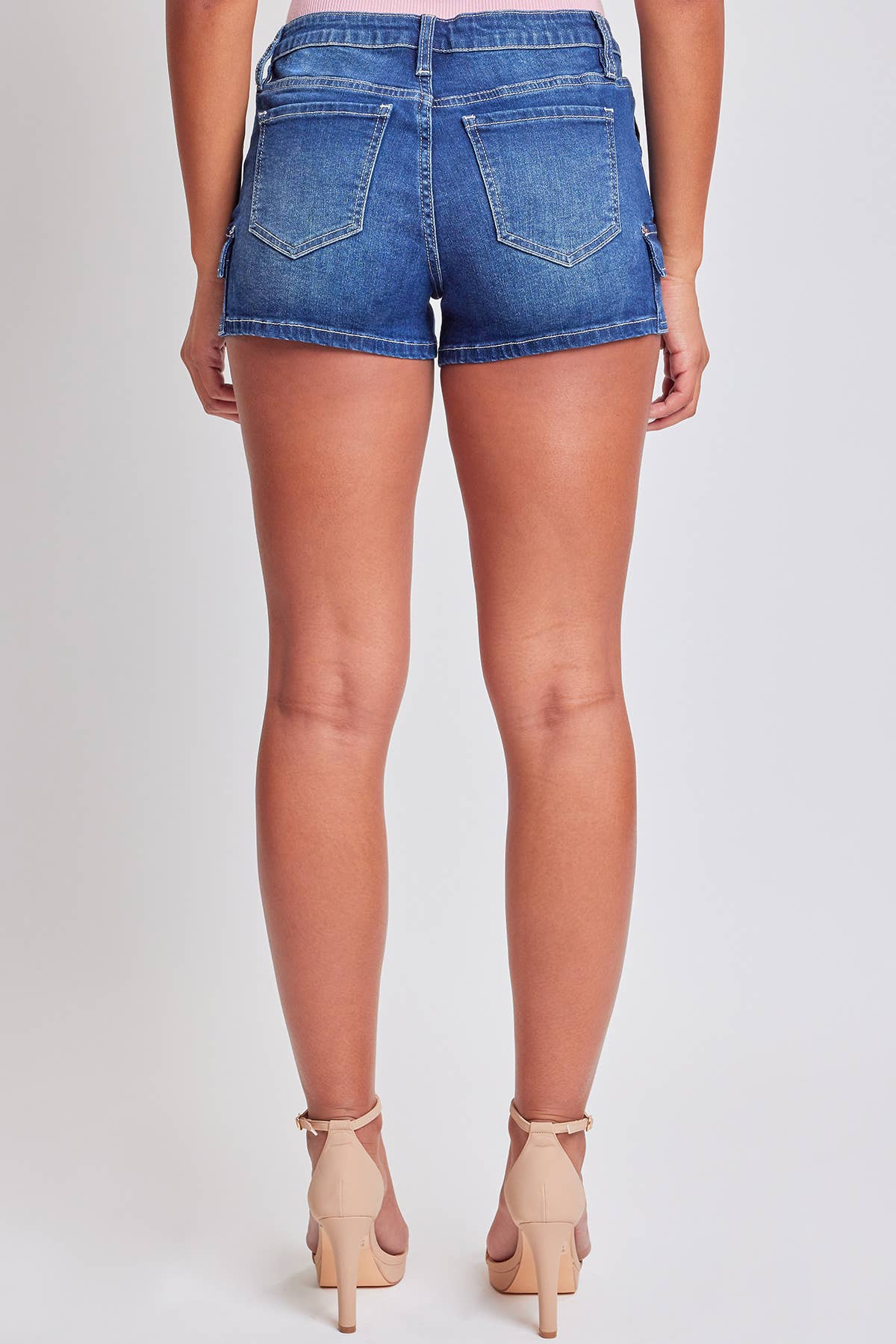 Utility details are here to stay! Our Junior Mid Rise Denim Cargo Shorts are going to be your new summer favorite. They feature a zip fly with a single button closure and two side cargo flap pockets that accentuate your hips. Style with your favorite tank and sneakers for a cute outfit perfect for a day of adventure!
