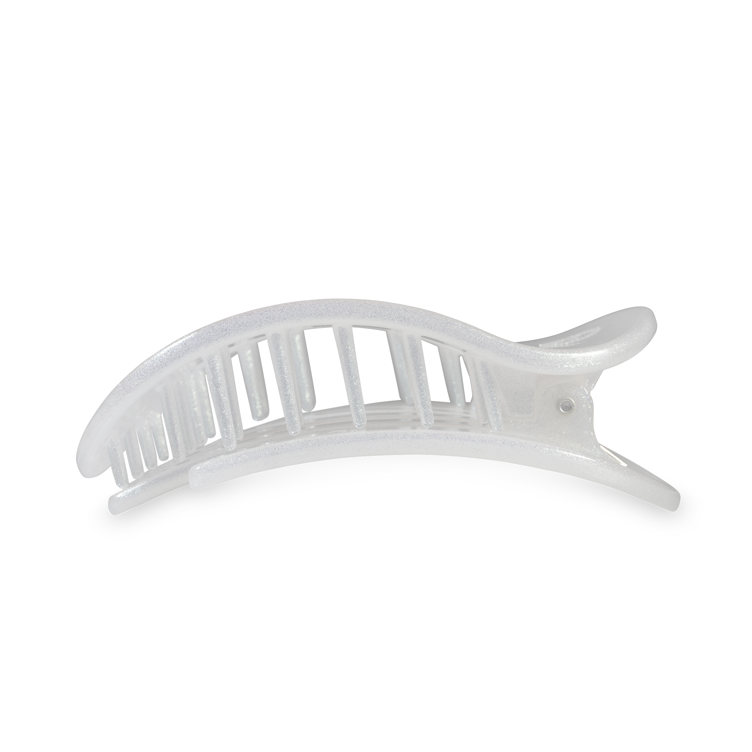Unwind and relax with the new TELETIES Flat Round Hair Clip! Designed with our same innovative material that is nearly unbreakable, this clip is perfect for lying down, doing yoga or simply laying back without discomfort.
