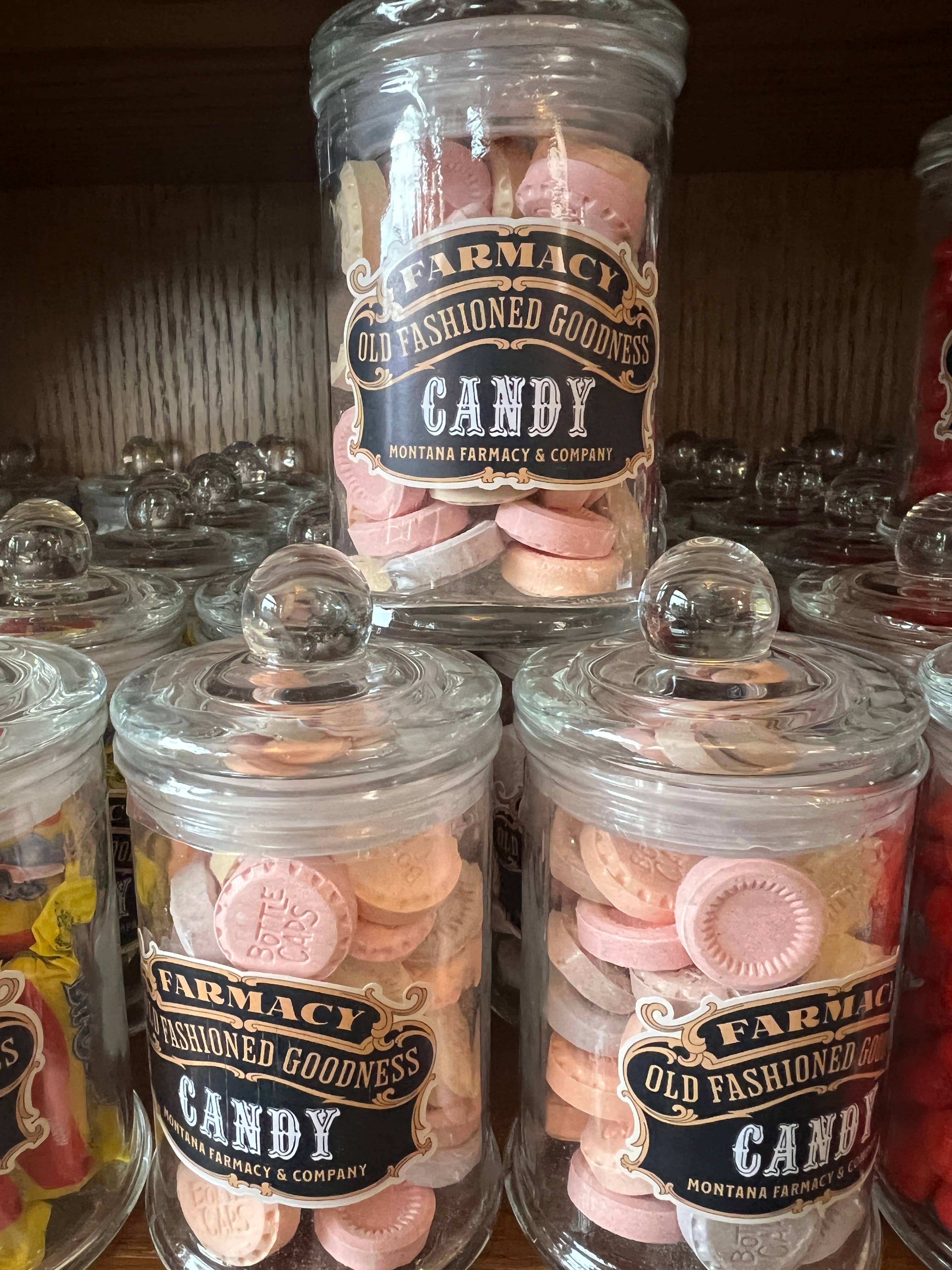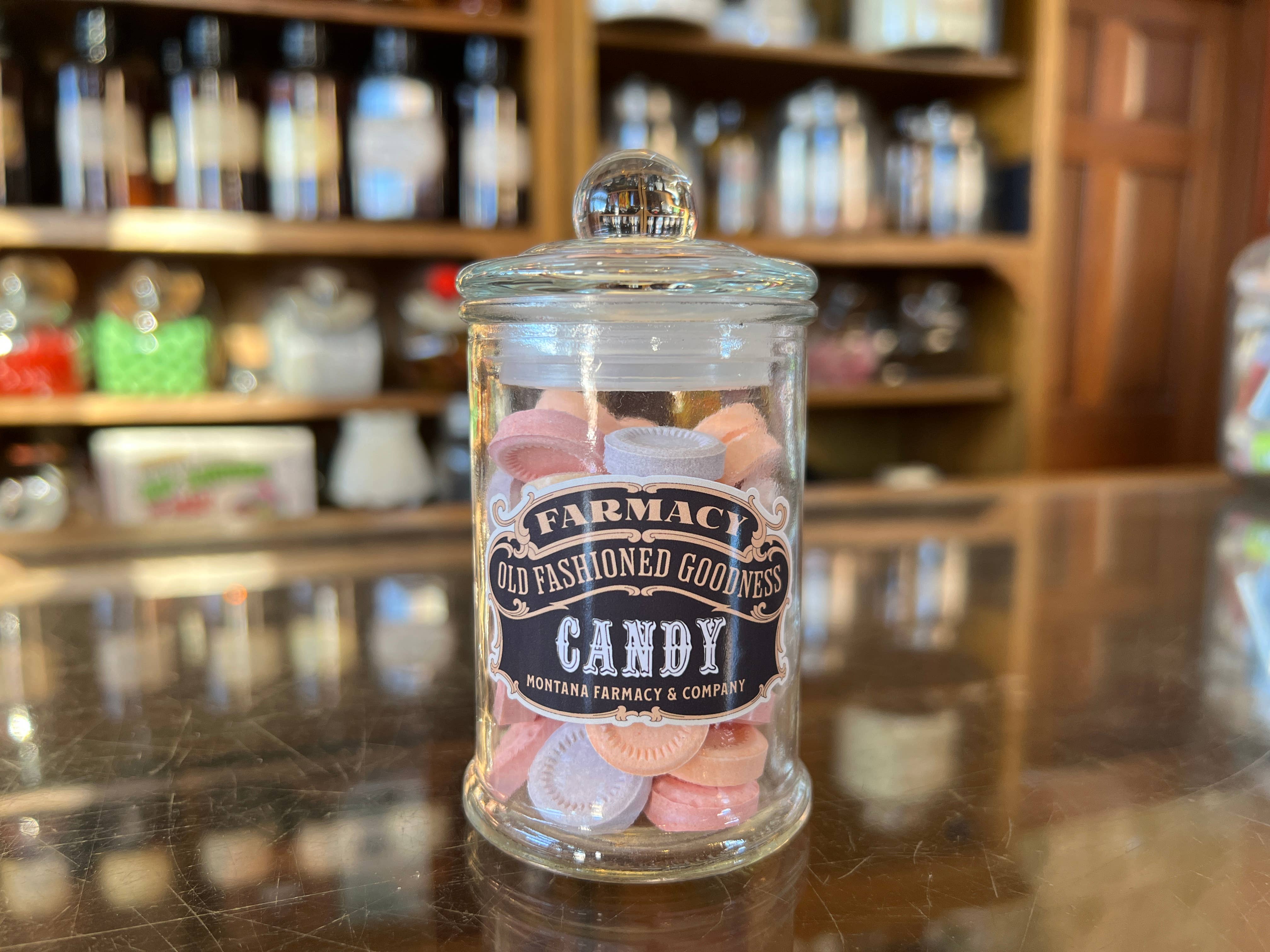 Old Fashioned Small Apothecary Jar filled with Nostalgic candy! It will take you back to your childhood memories— Sweet and Joyful- Great for Valentines