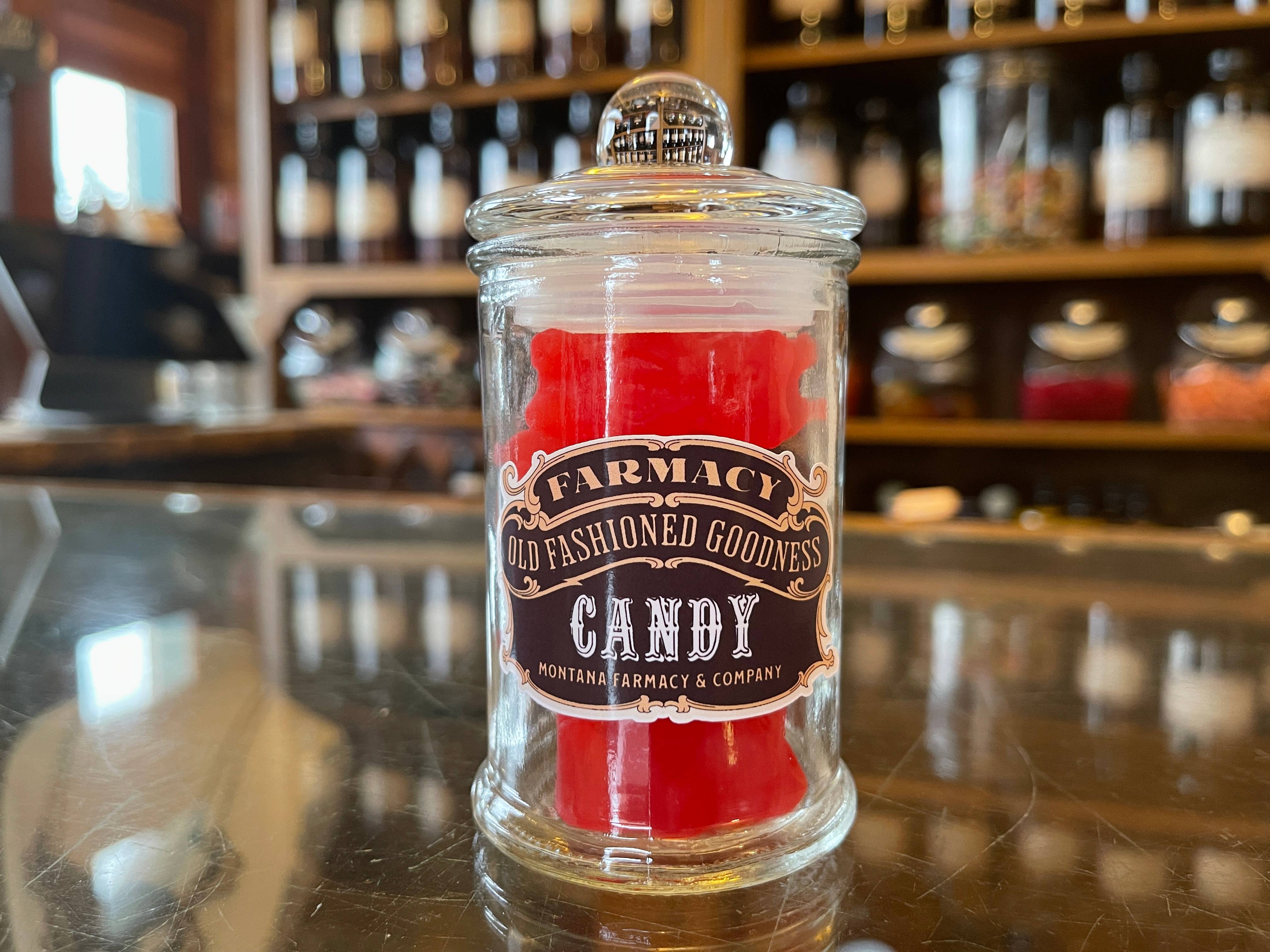 Cinnamon Bears Candy in Old Fashioned Apothecary Jar