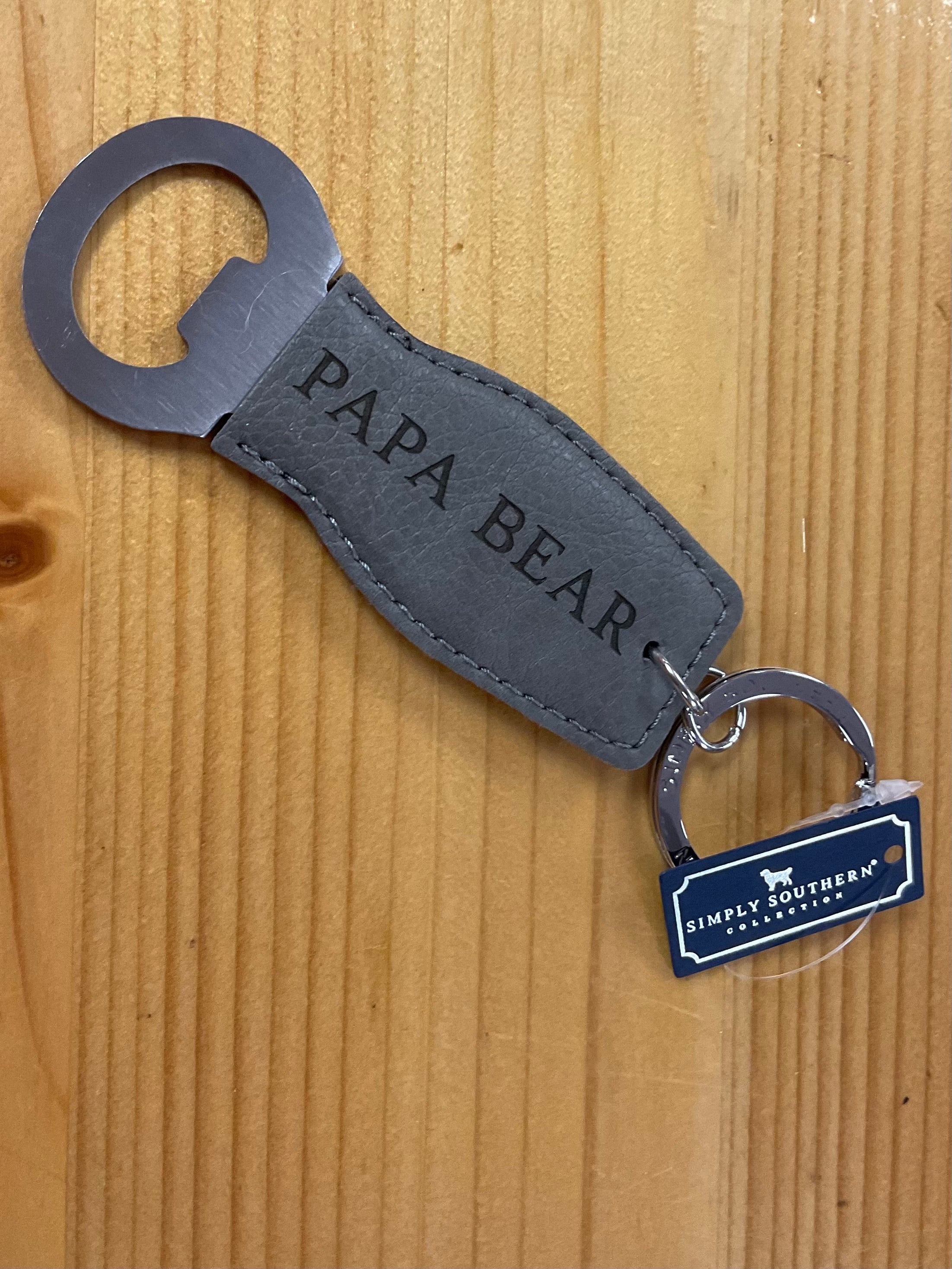 Get ready to put a smile on the face of your beloved granddaddy with our "Papa Bear" Bottle Opener Keychain. This leather keychain has a gray bottle opener attached to it, making it both stylish and functional. Let your granddaddy know you care by giving him this quirky keychain - perfect for cracking open a cold one during his downtime.