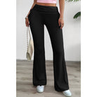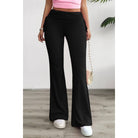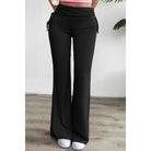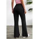 Alisha ~ Pleated Solid Waist Band Fit Pants: BLACK