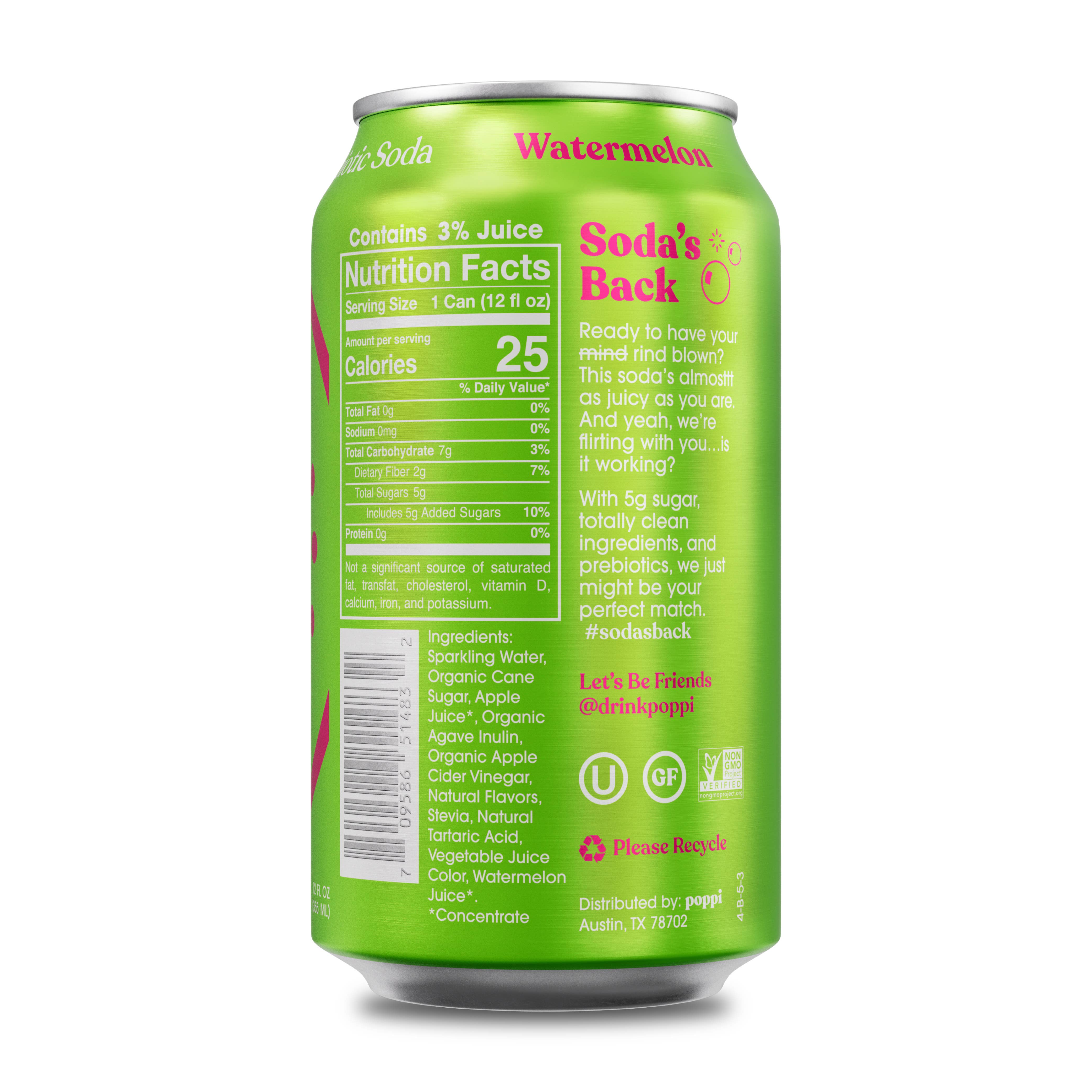 Poppi Prebiotic Soda, Watermelon, 12oz
