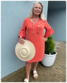 Stephanie ~ 3/4 Ruffle Sleeve Burnt Orange Dress *Final Sale*